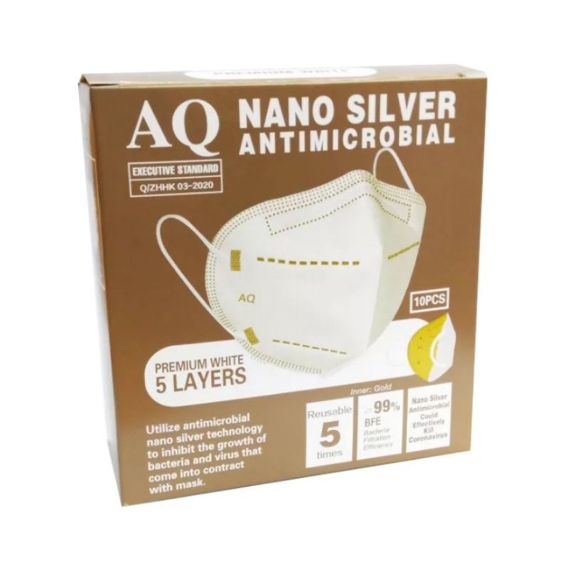AQ Disposable Face Mask 5PLY KN95 Nano Silver Antimicrobial 1pc Reusable 5 Times