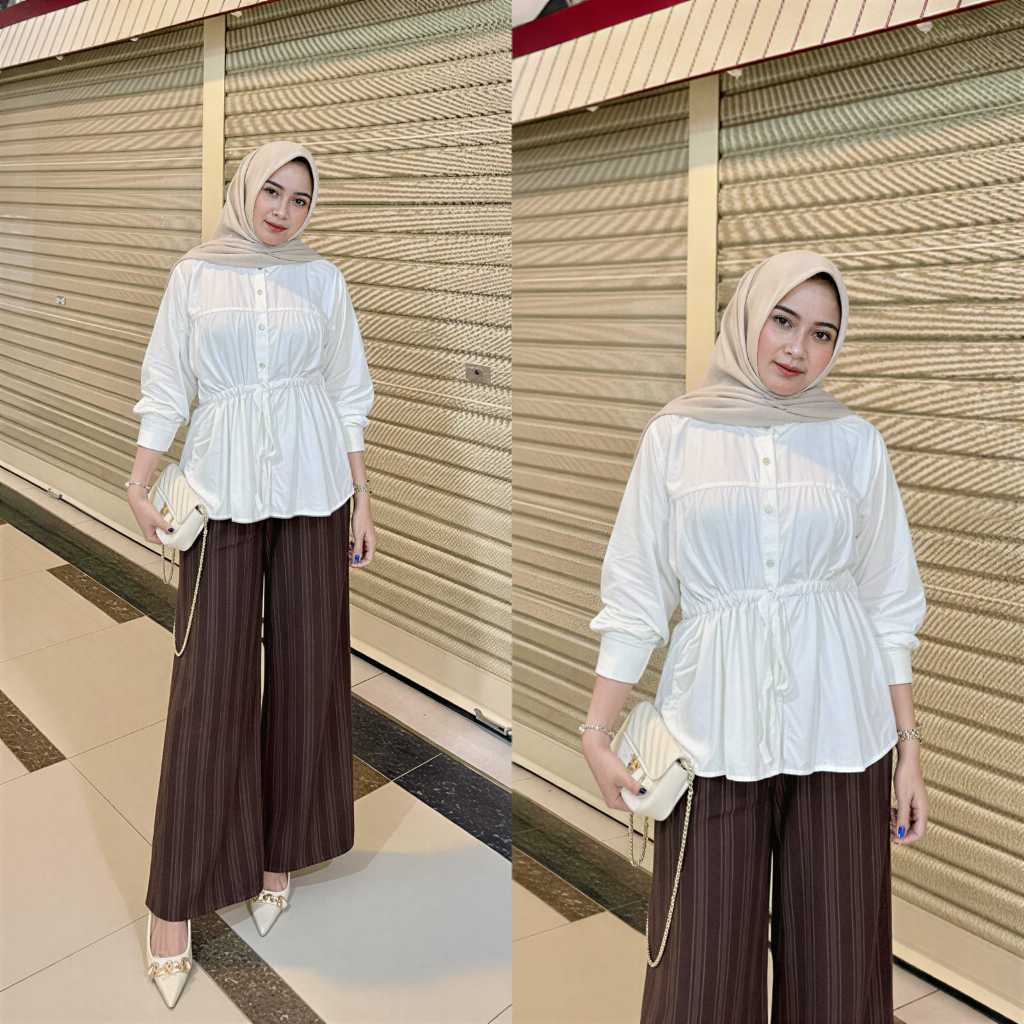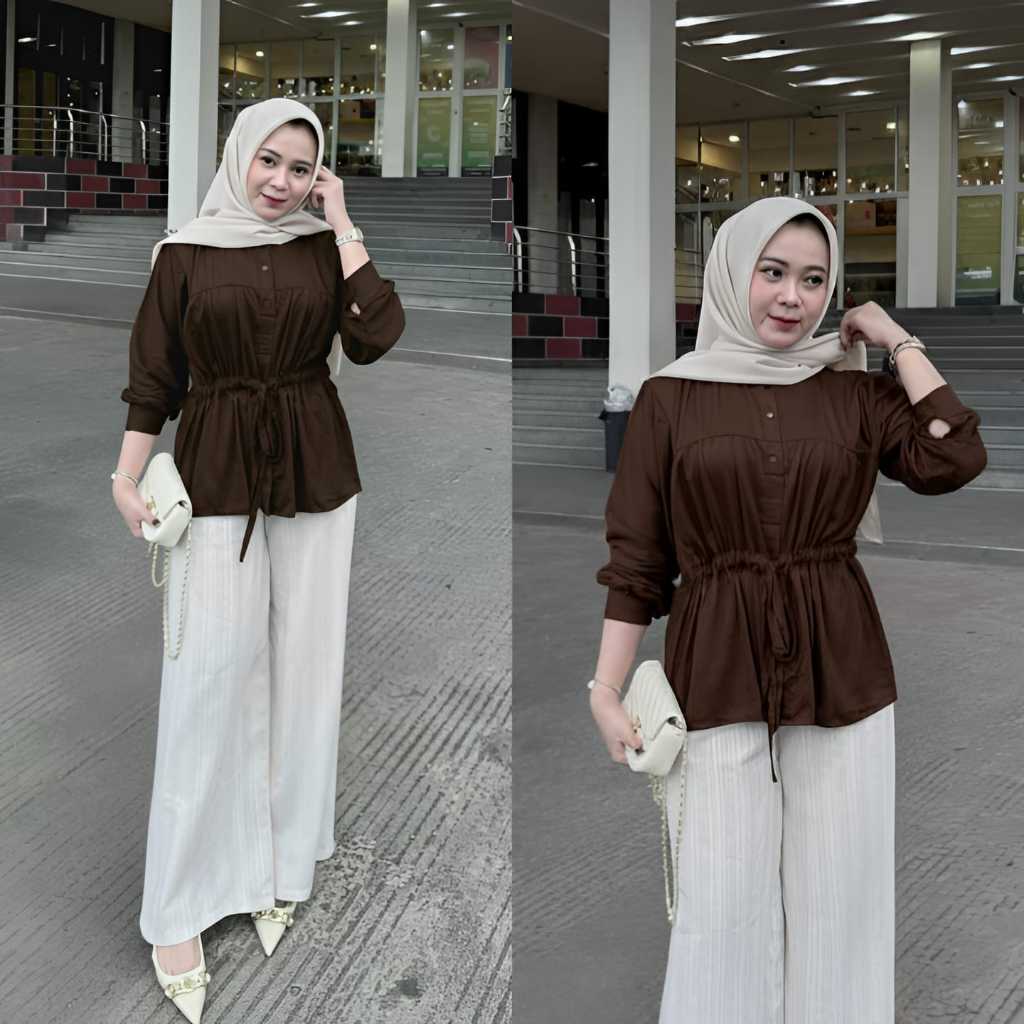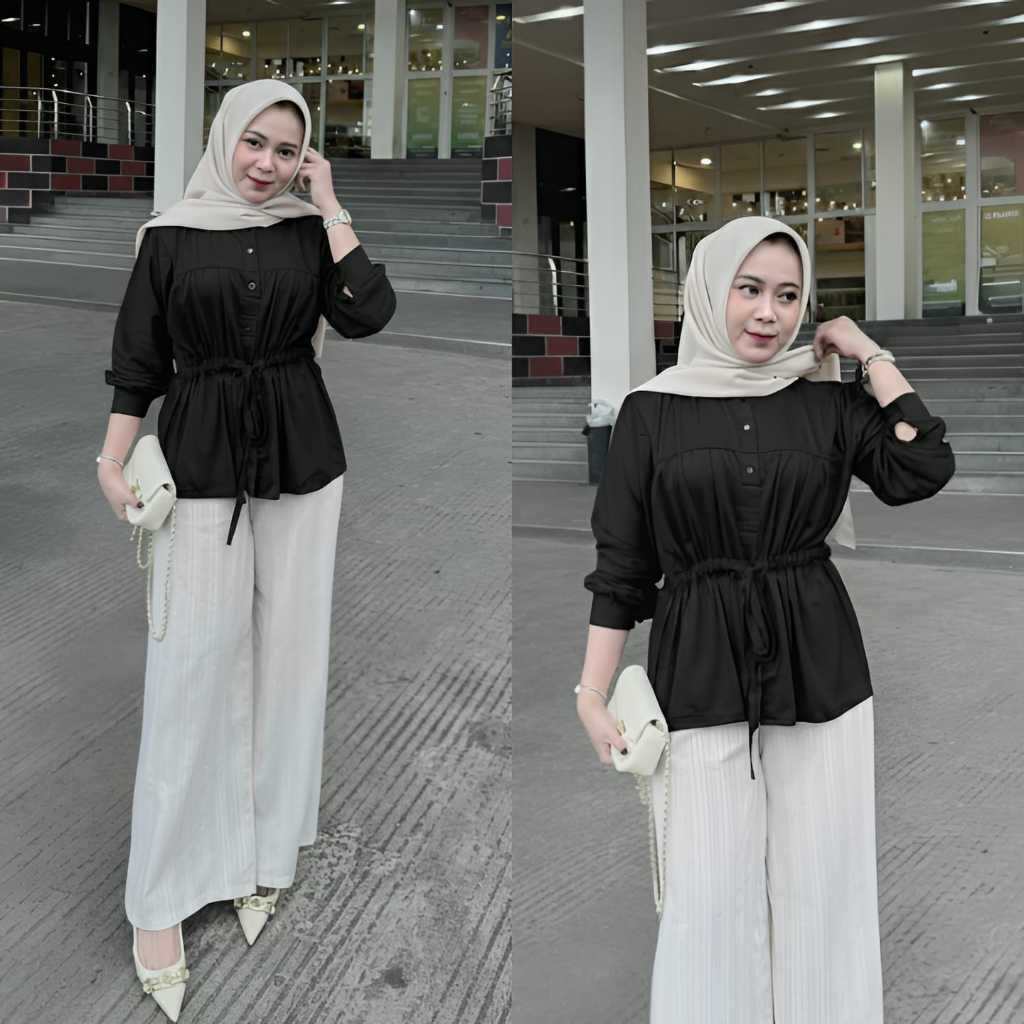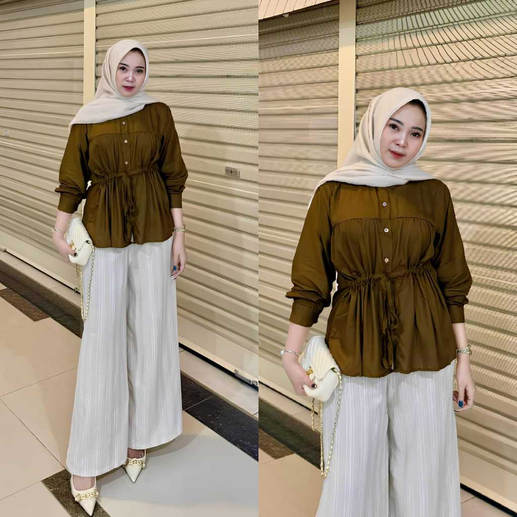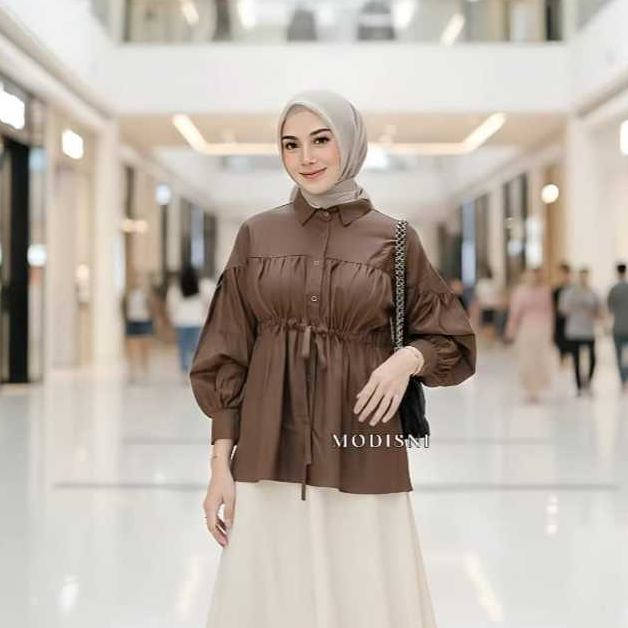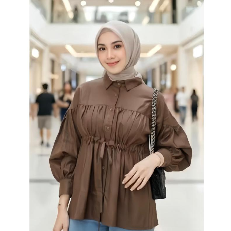 KEMEJA DEARA BLOUSE By Modisni | Rayon Twill Shirt with Pleated Belly | Women's Pleated Shirt Top | Latest Plain Casual Blouse Women's Tops