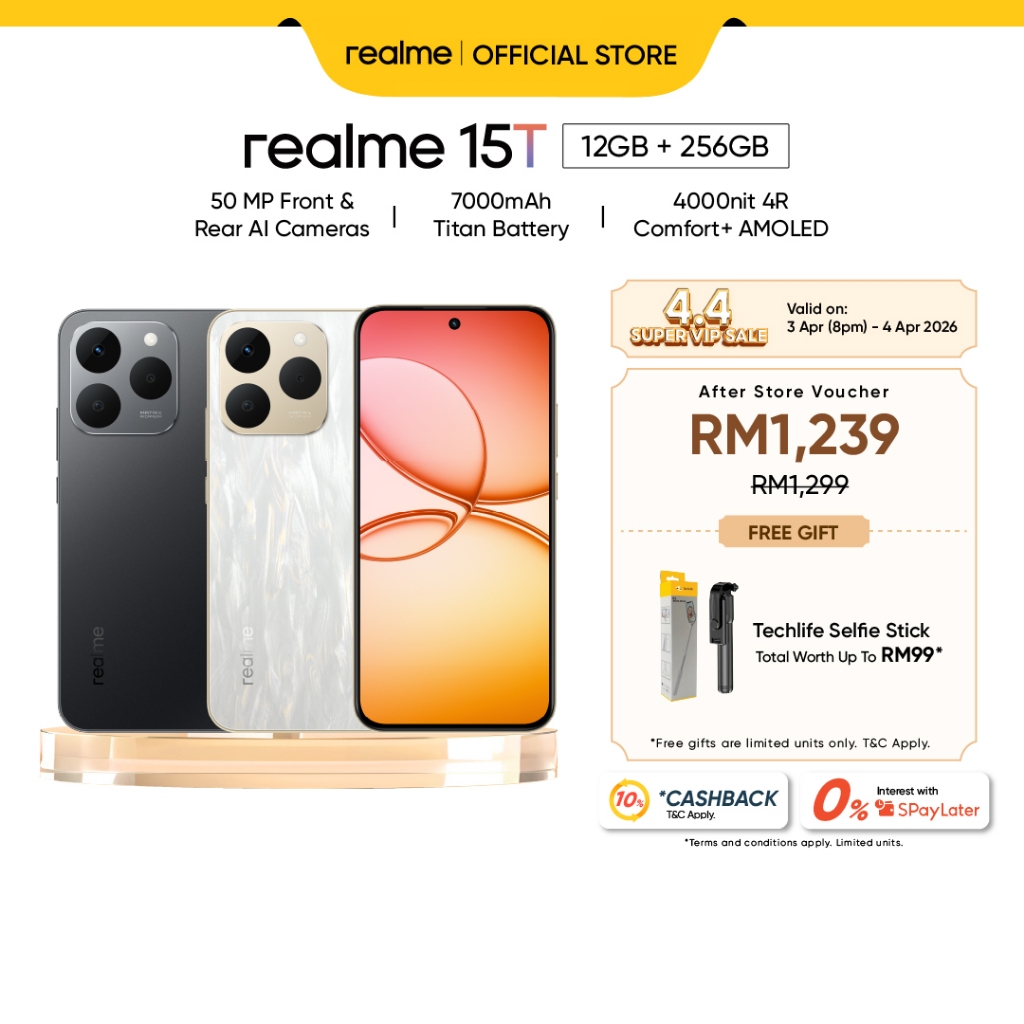 realme 15T (12+256GB) | 50 MP Front & Rear AI Cameras | 7000mAh Titan Battery | 4000nit 4R Comfort+ AMOLED