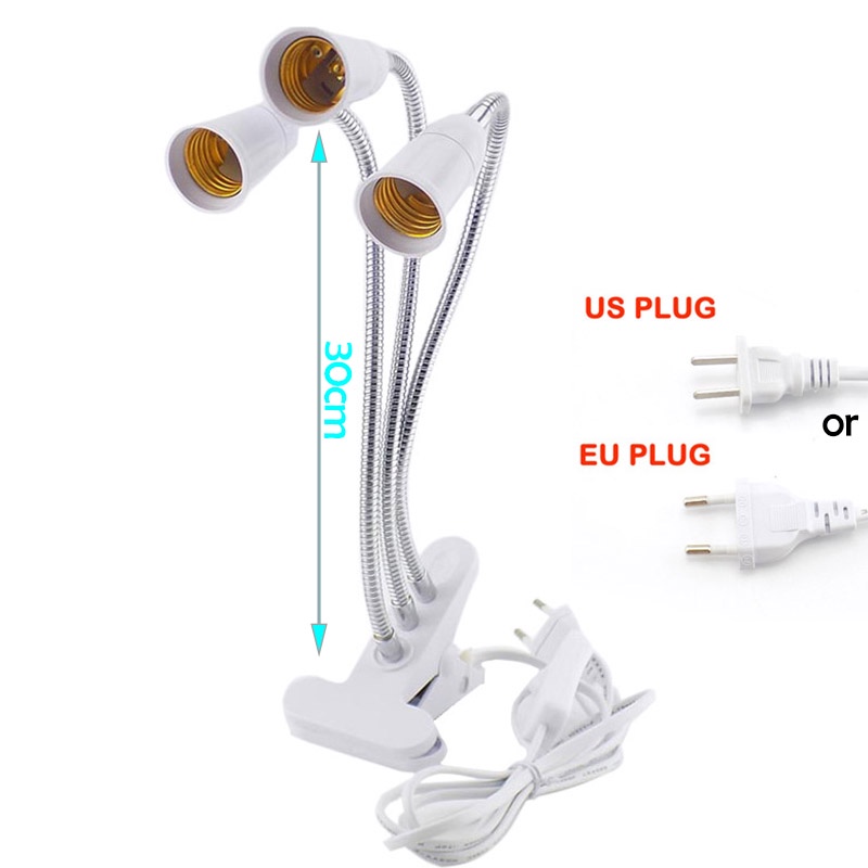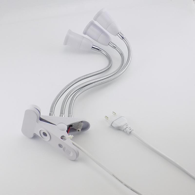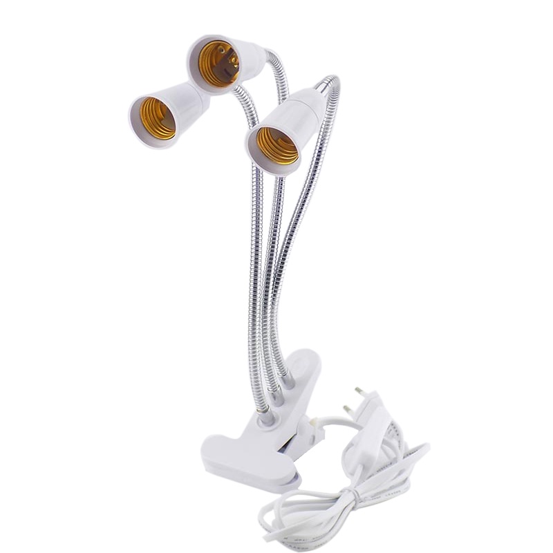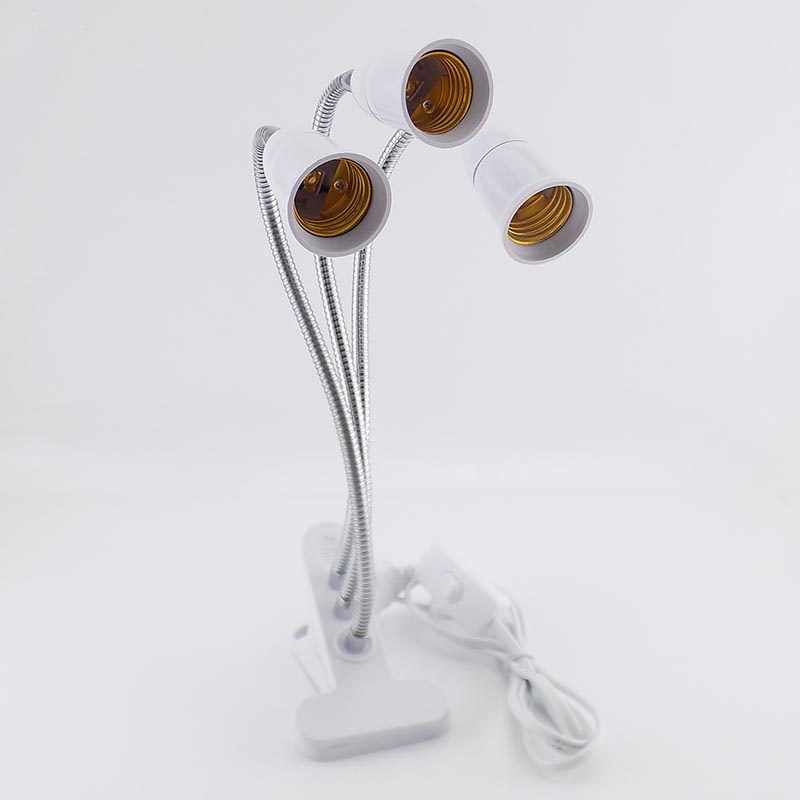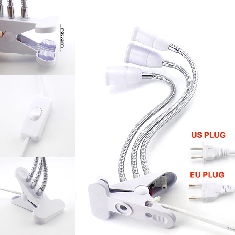 3 Heads E27 Socket Flexible Desk Light Clip With On/Off Switch Lamp Holder For LED Plant Grow Bulbs Base