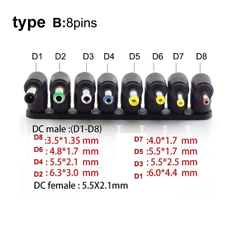 Universal 5.5mmx2.1mm DC AC Power Adapter Tips Connector Kits for Laptop Power Supply Plug Charging Jack Sets
