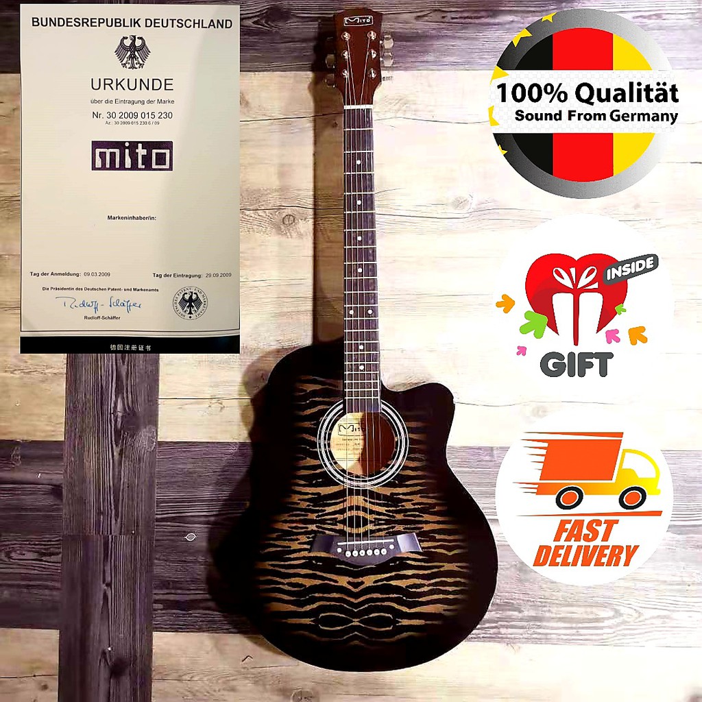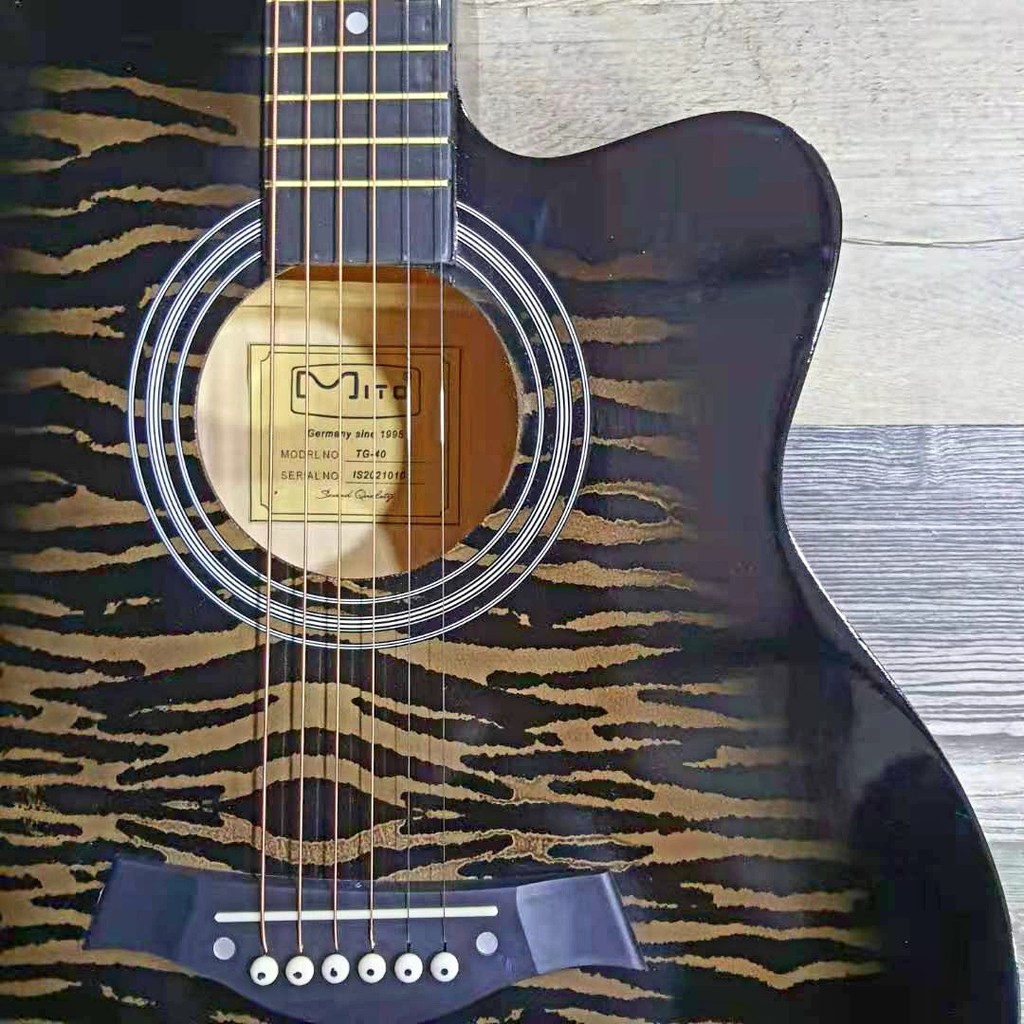 Mito TG-40 Black Tiger Skin Truss Rod 40" Inch Natural AC Acoustic Guitar with Neck Iron Rod # Wings Piano Bass Capo OAG
