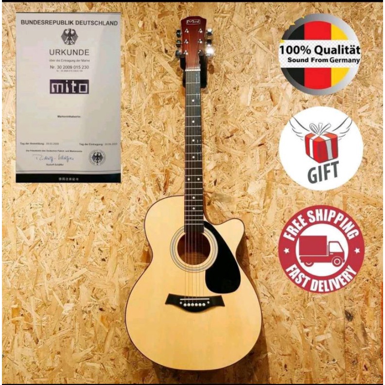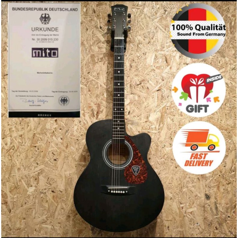 Mito D-40 Truss Rod 40" Inch Walnut AC Acoustic Guitar with Neck Iron # Wings Piano Bass Electric Capo Tuner Blues Jazz