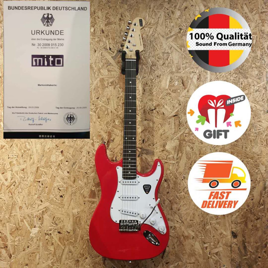 Mito ST (Glossy) Stratocaster Red Electric Guitar # Telecaster Cromok Wings Piano Bass Capo Tuner Ukulele OAG Blues Jazz