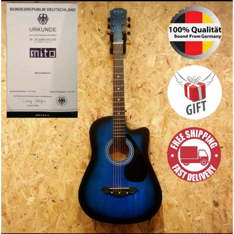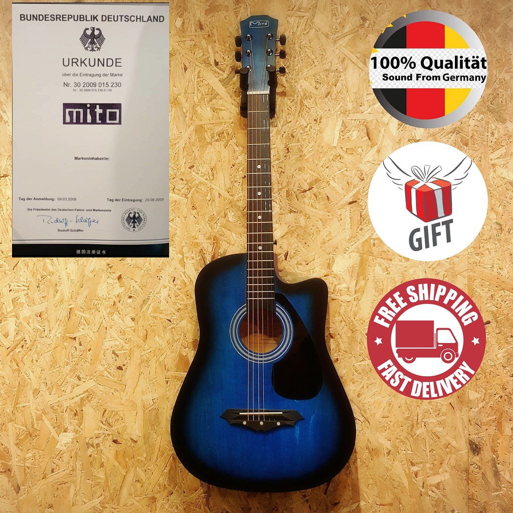 Mito D-38 38" Inch Matt Blue Acoustic Guitar Folk with Pickguard # Wings Piano Bass Capo Tuner Ukulele Saxo Blues Jazz