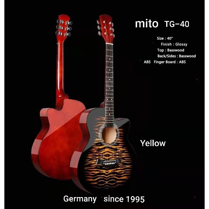 Mito TG-40 Yellow Truss Rod 40" Inch Natural AC Acoustic Guitar with Neck Iron Rod # Wings Piano Bass Capo Tuner Search