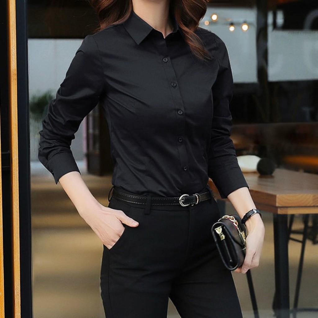 Black Womens Professional Shirt 2025 Stretch Fit Office Wear Short Long Sleeve Blouse Formal Attire Basic Work Uniform Elegant Top