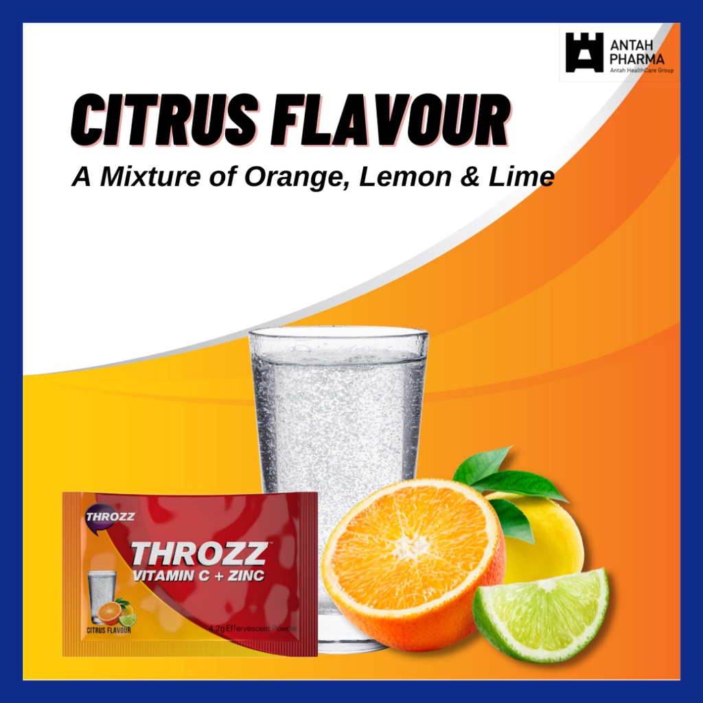 Throzz Vitamin C + Zinc Effervescent Powder (Soluble for drinking) [1 Box = 50 Sachets x 1000mg] EXP April 2027
