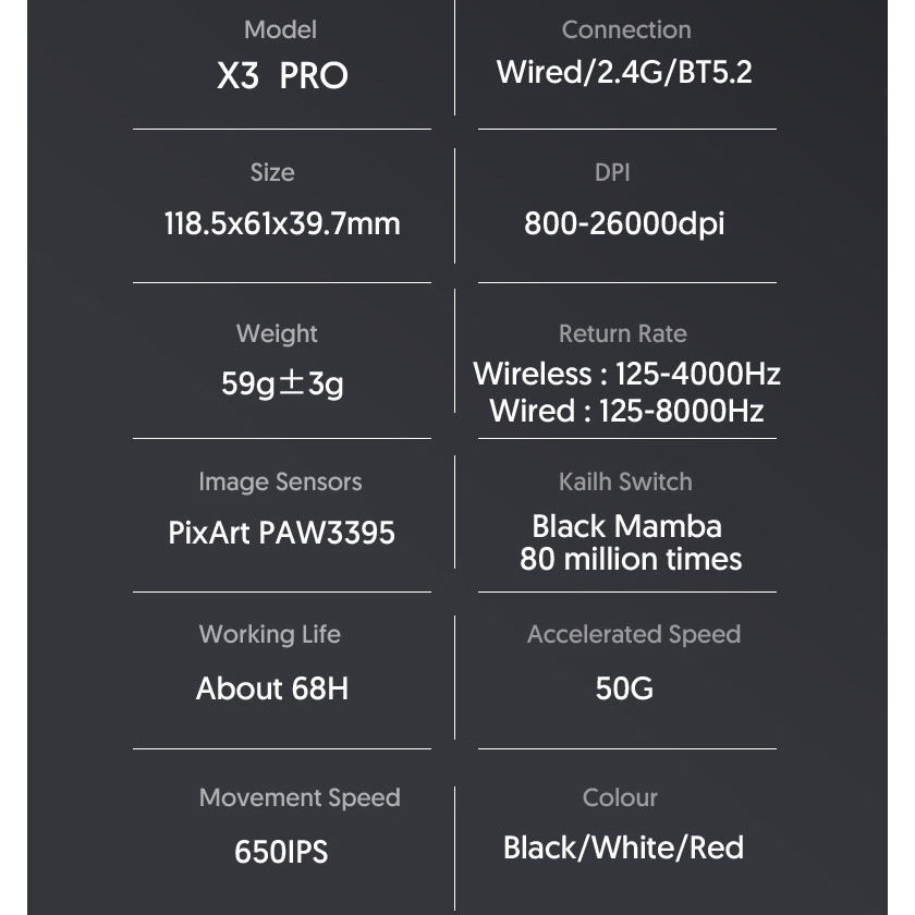 Attack Shark X3 PRO 4K Wireless Mouse Tri-Mode 2.4G 5.2BT Type-C 6-Gear 26000DPI PAW3395 E-Sports Game Office Mouse Gift