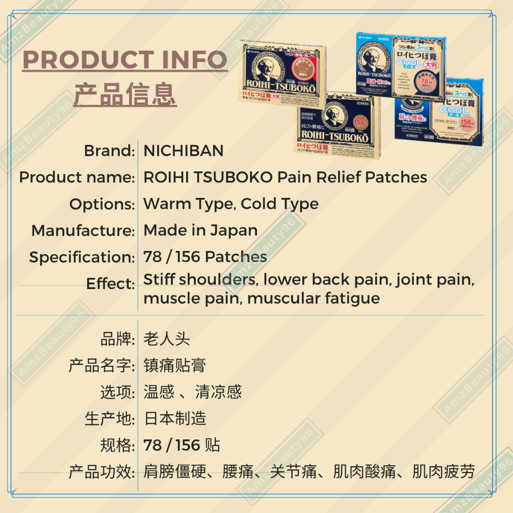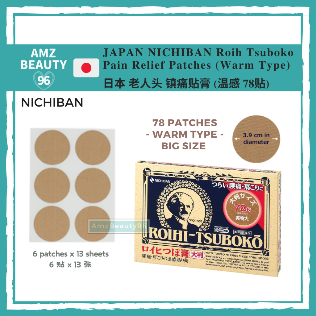 Japan Nichiban Roihi Tsuboko Pain Relief Patches (Warm/Cold) 老人头 镇痛贴膏 温感/清凉 (78P | 156P)