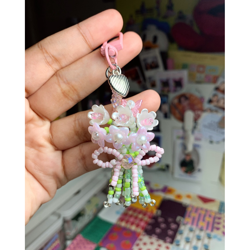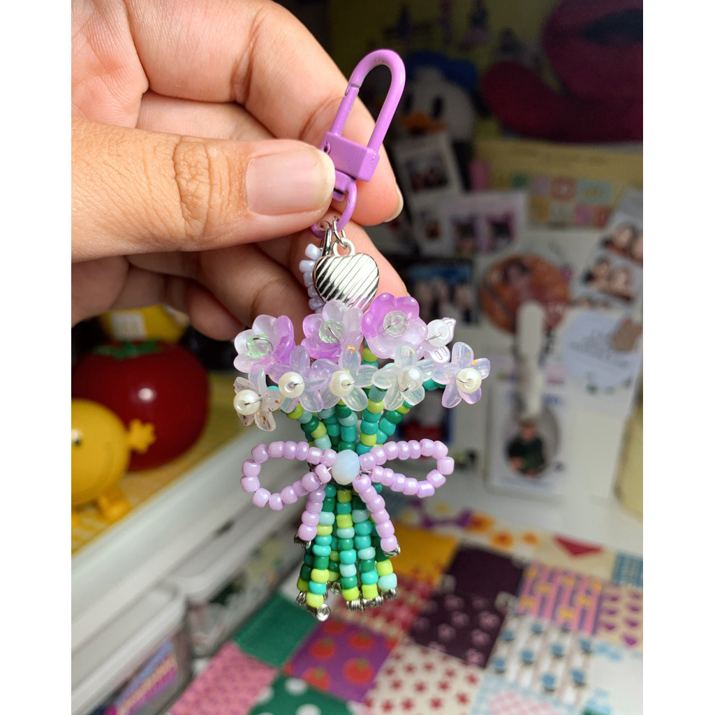 Beaded bouquet flowers keychain | Beaded flower bouquet | Beads bouquet keychain