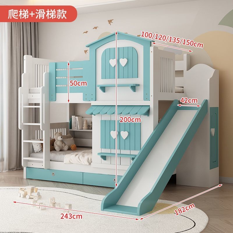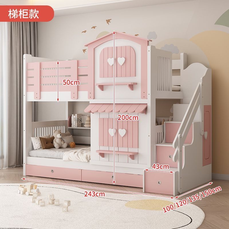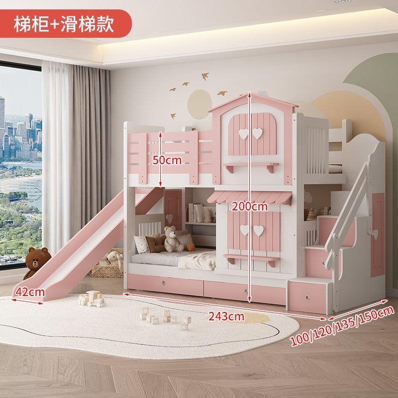Kids Bed Girls Bunk Bed Pink Princess Castle Bed Slide Up And Bottom Bed Slide Cabinet 儿童床 公主床