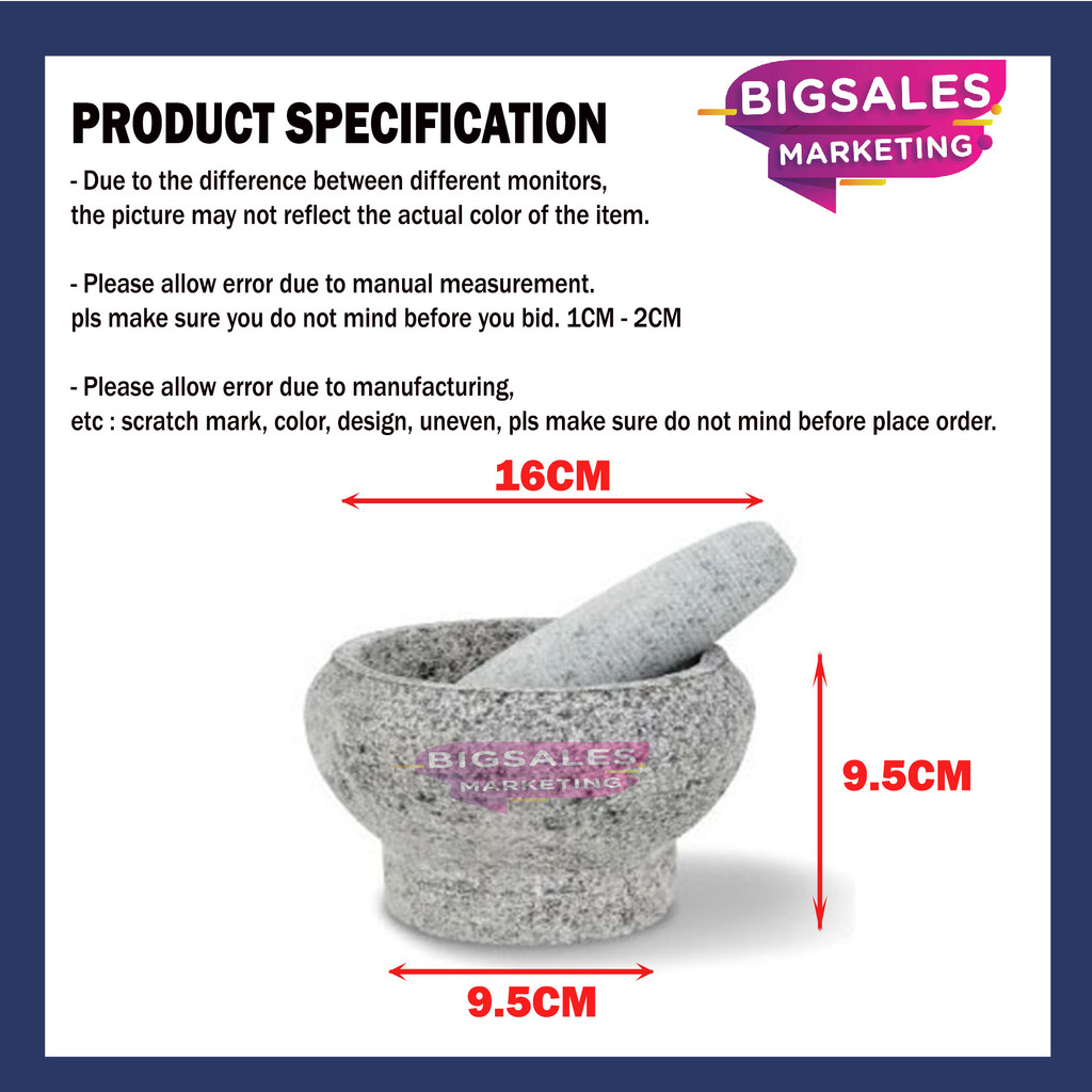 16cm/17.5cm/19cm Batu Lesung Granite Stone Mortar And Pestle Kitchen / Penumbuk Lesung Batu
