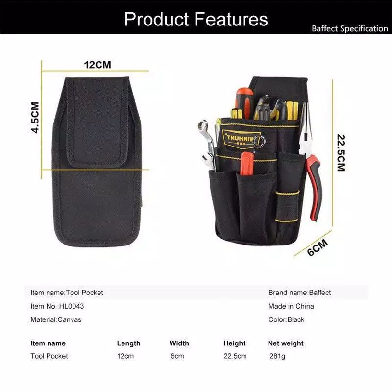 Waist bag, tool bag, screwdriver bag and key