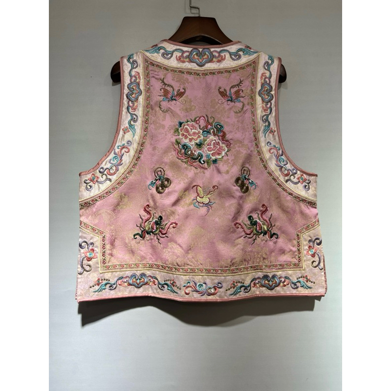 新中式国风立领盘扣重工花刺绣马甲格格服上衣粉色
