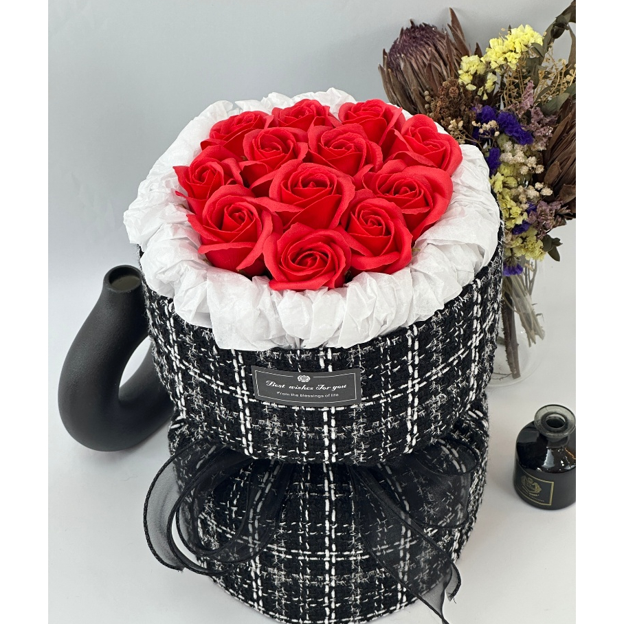 Soap Rose Flower Bouquet Exquisite Chanel 12 Stalk Soap Rose Bouquet Valentine Round Lasting Flower Bunga Channel