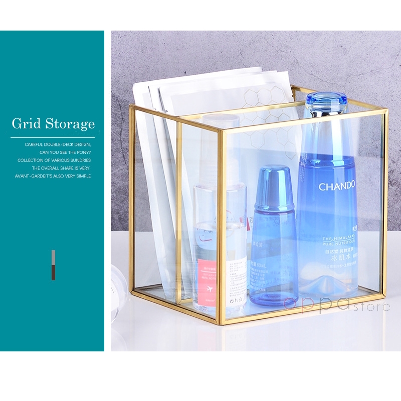 MUMU Style Nordic Gold Glass 2/3/4 Grid Jewelry Storage Box Cosmetic Makeup Organizer Mask Skin Care Brushes Display