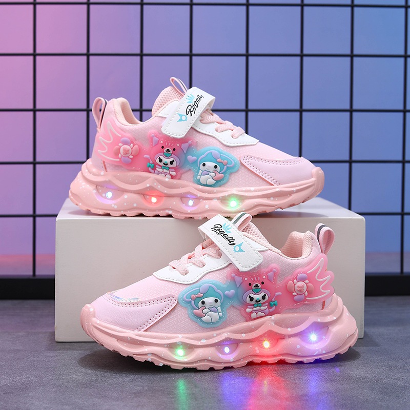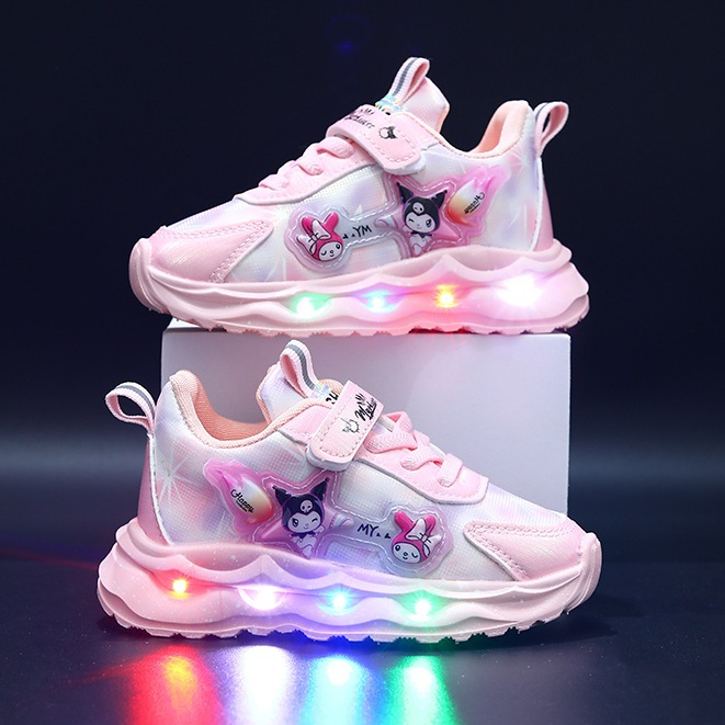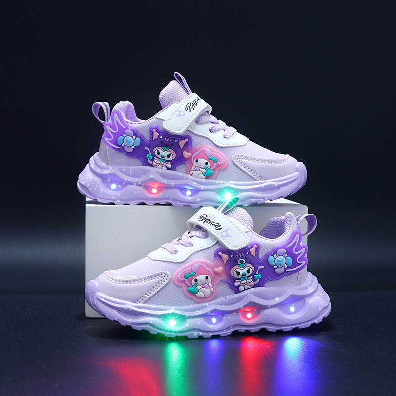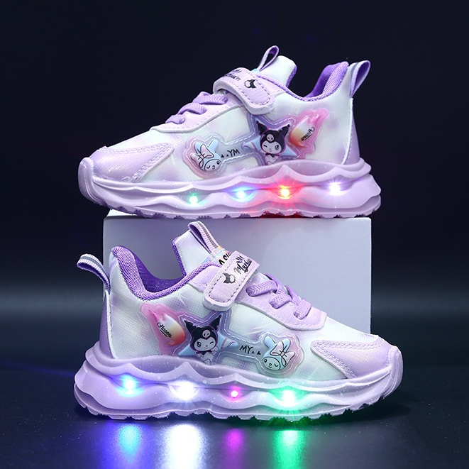 Kid Shoes Sanrio Kuromi Melody Lighting Led Sport Shoes Girl Kasut Lampu Budak Perempuan Kasut Sneaker