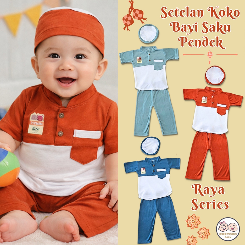 Baby Clothes and Pants Set Muslim Baby Clothes Raya Series Bonus Peci Age 0-6 Months Short Sleeve Front Pocket PIP MIM SNI