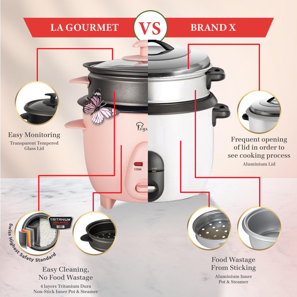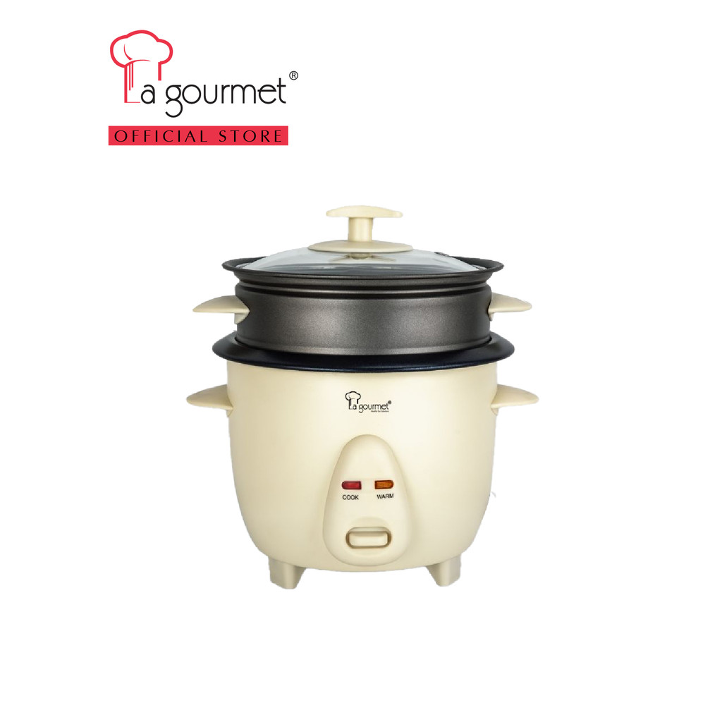 La gourmet 0.6L Rice Cooker with Non-stick Steamer - Vanilla Cream
