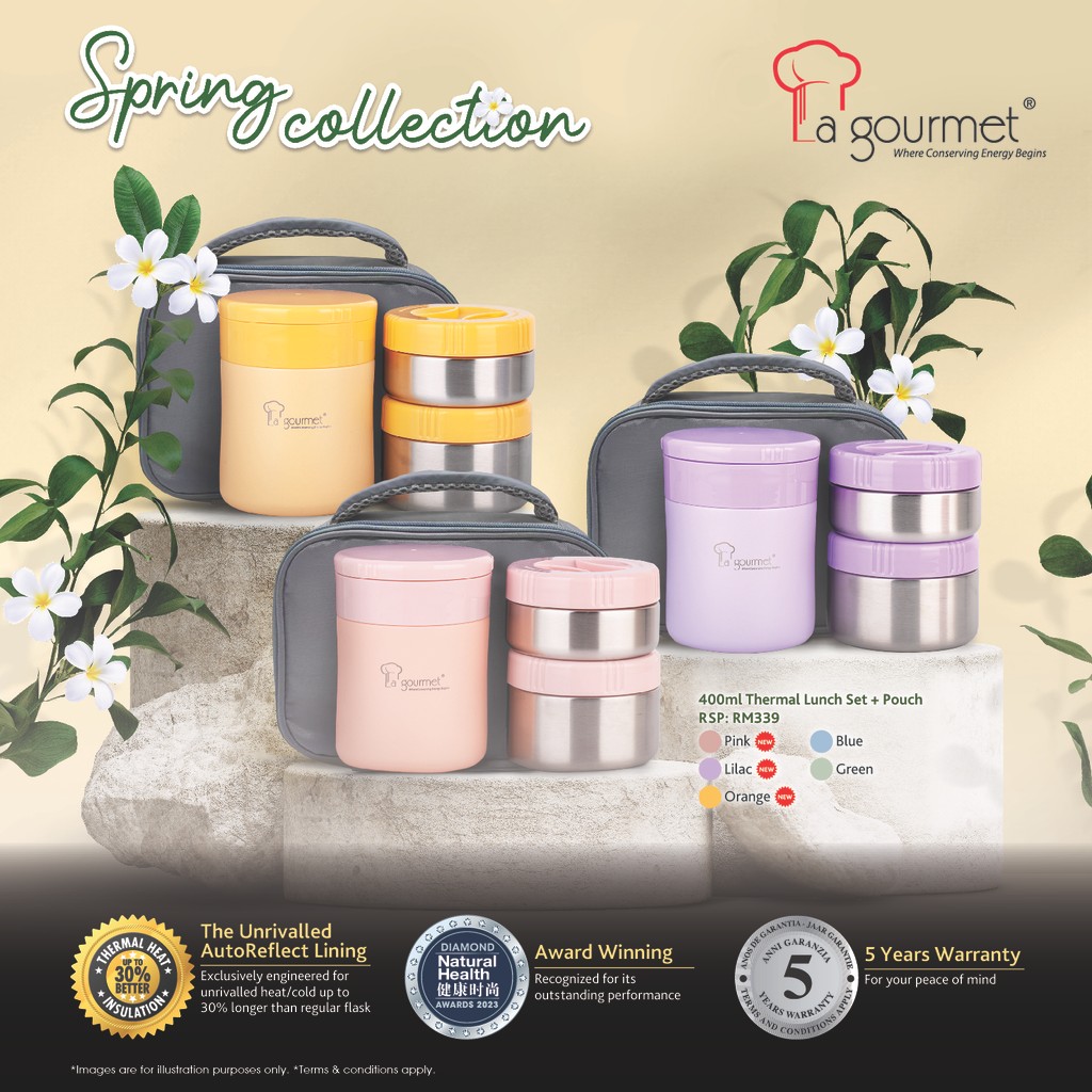 La gourmet Spring Thermal Lunch Set with Pouch (Assorted Colour)