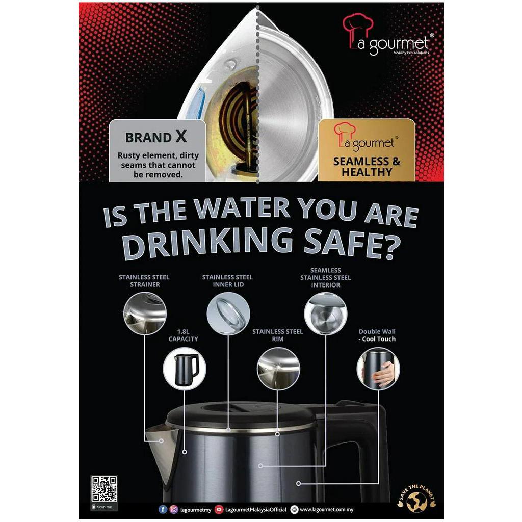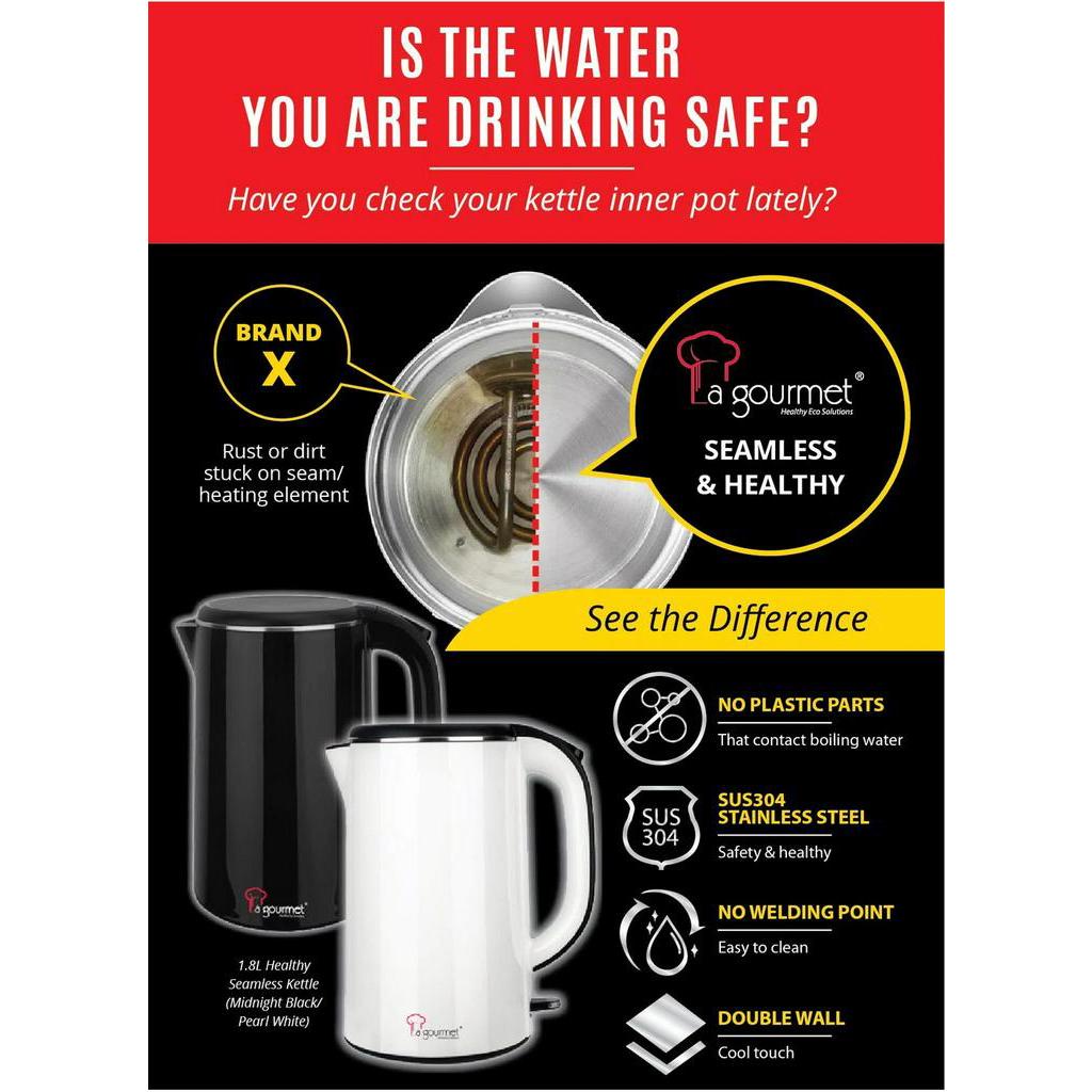 La gourmet Healthy Seamless Electric Kettle 1.8L (Assorted Colour)