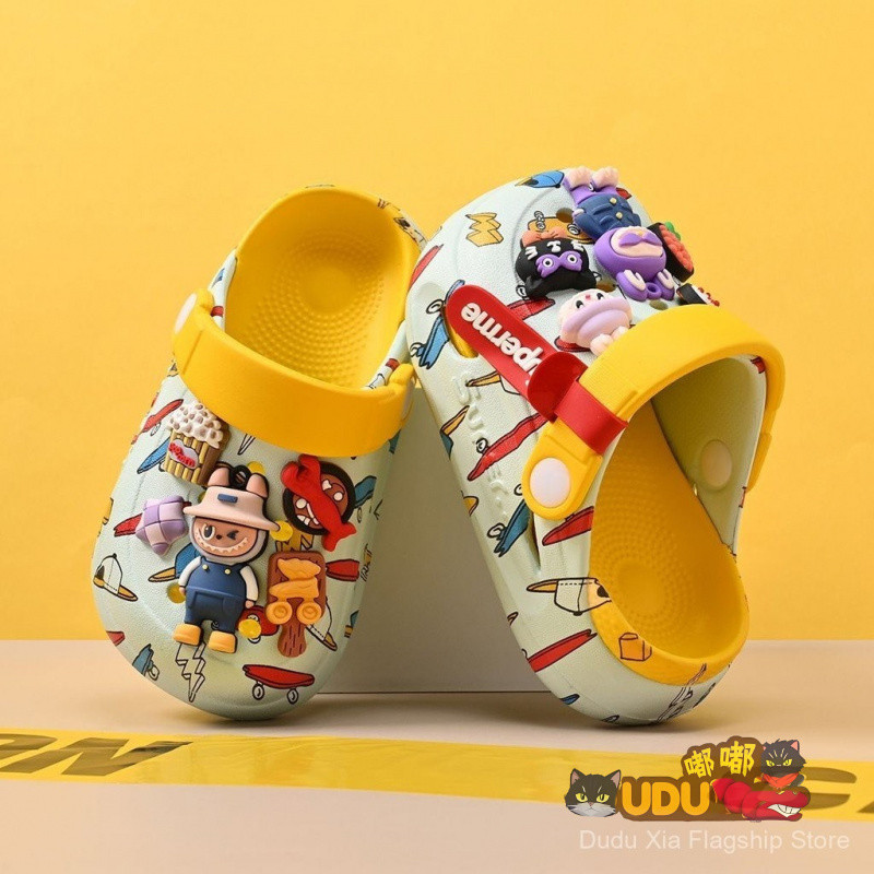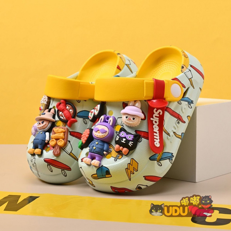 Cartoon Cartoon labubu Hole Shoes Summer Outing Casual All-Match Soft Sole Anti-Slip Home Sandals Slippers labubu Outdoor Beach Shoes Children Gifts