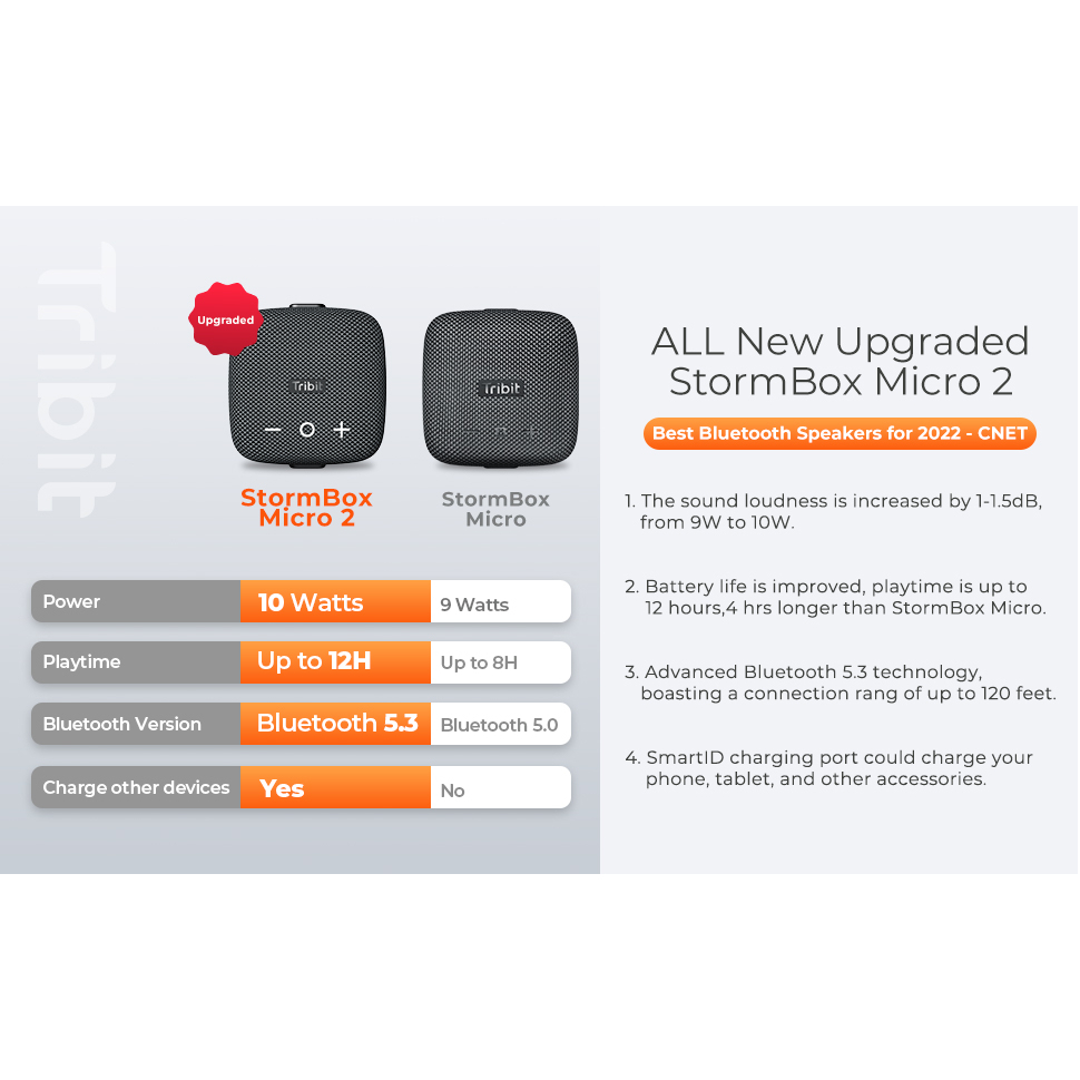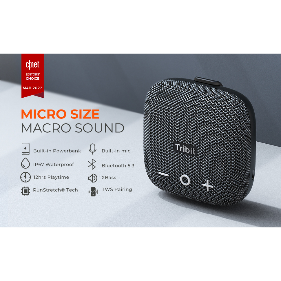 Tribit Stormbox Micro 2 Portable Speaker Bluetooth 5.3 TWS Pairing Deep Bass IP67 Waterproof Built-in Strap Loud Sound