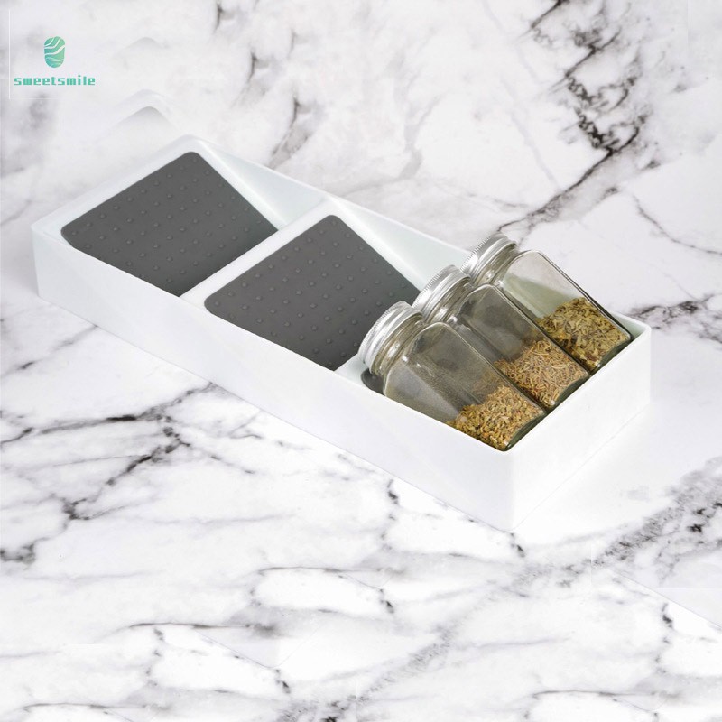 Kitchen Spice Rack Drawer Storage Non-skid 3 Grids Organizers for Seasonings Bottles