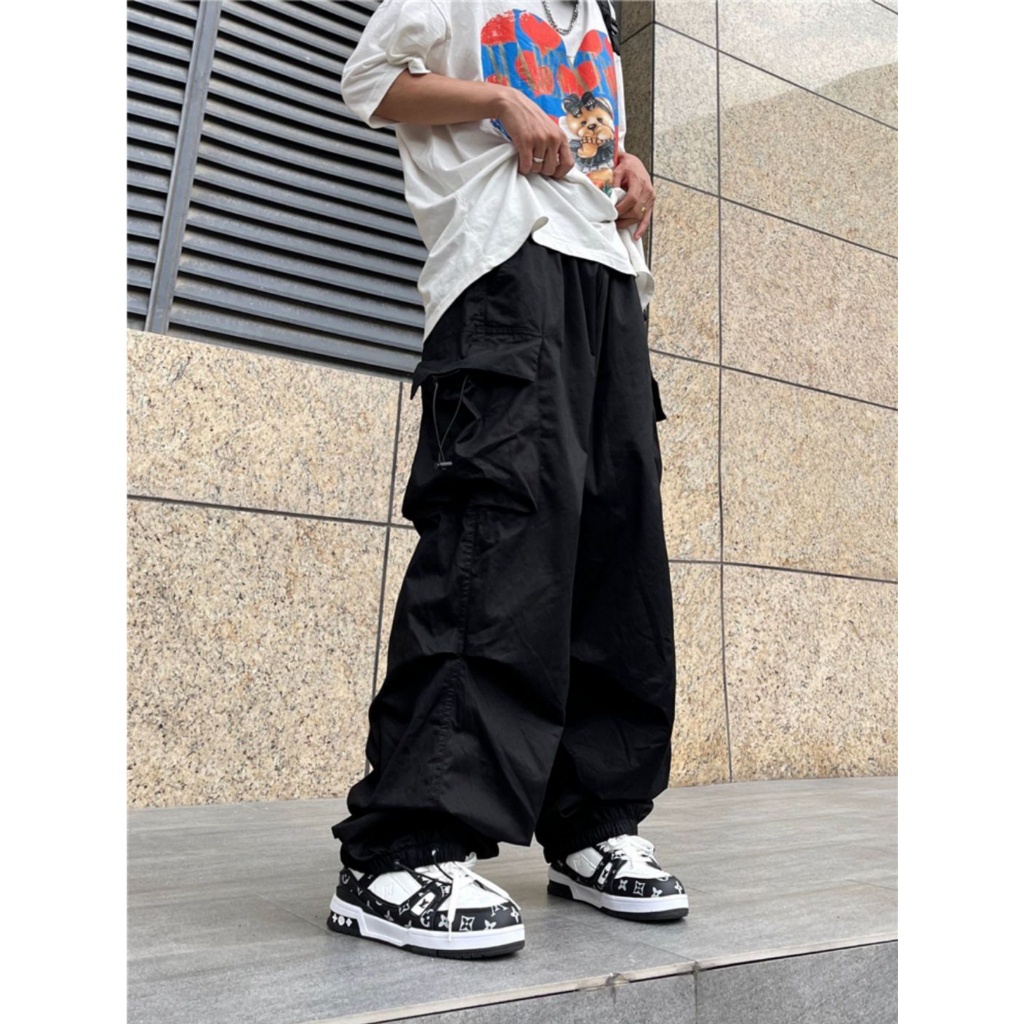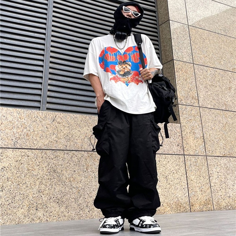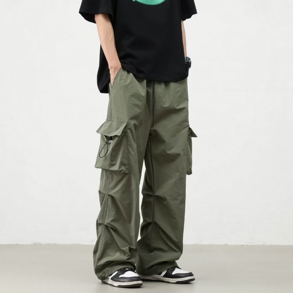 Multi Pocket Cargo Pants Men Vintage Casual seluar cargo lelaki Loose Plain Straight Leg Long Pants