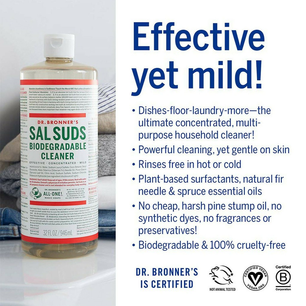【Ready Stocks】Dr. Bronner's Sal Suds Biodegradable Cleaner 946ml (32oz)