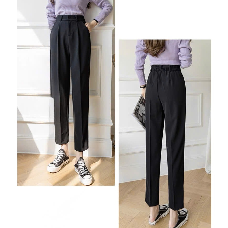 Women's baggy trousers with high waist and elastic back for office, black and brown, long style, high-waisted women's baggy school Pants, soft and plain fabric Seluar Perempuan Seluar Slack Wanita
