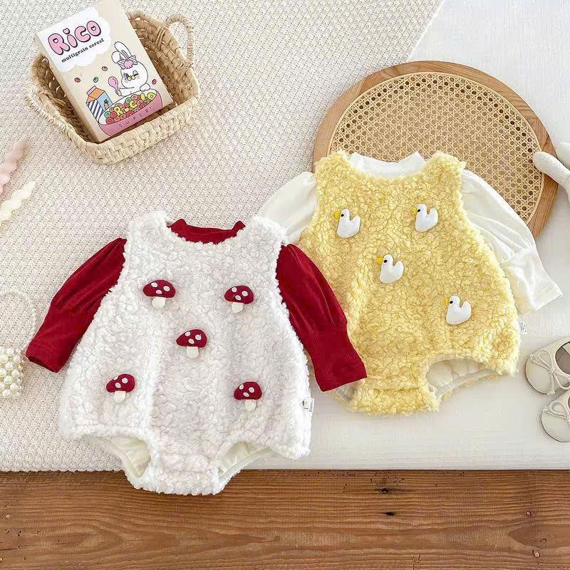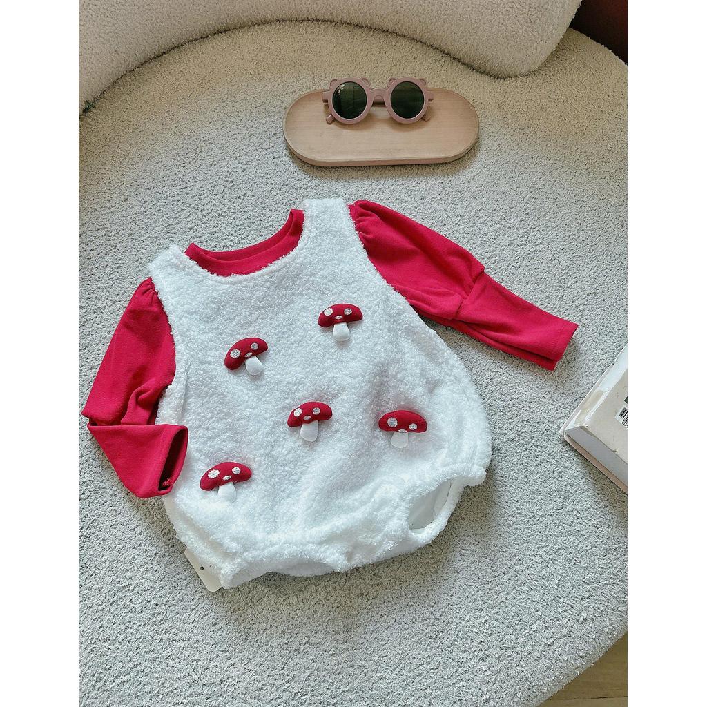 [ Shirt + bib ] Babyshop88vn long-sleeved bodysuit for boys and girls H241125-2 Duck Mushroom Jumpsuit