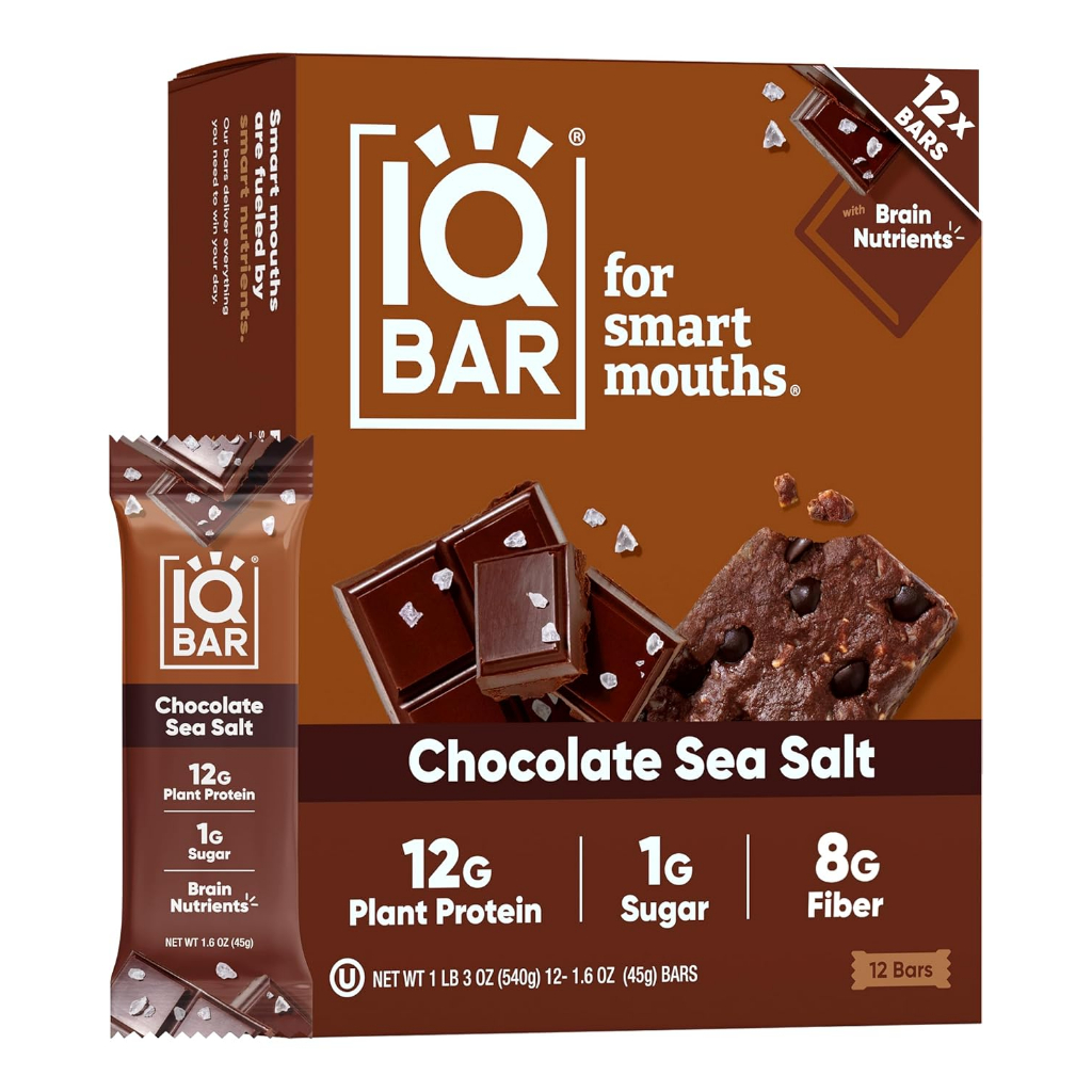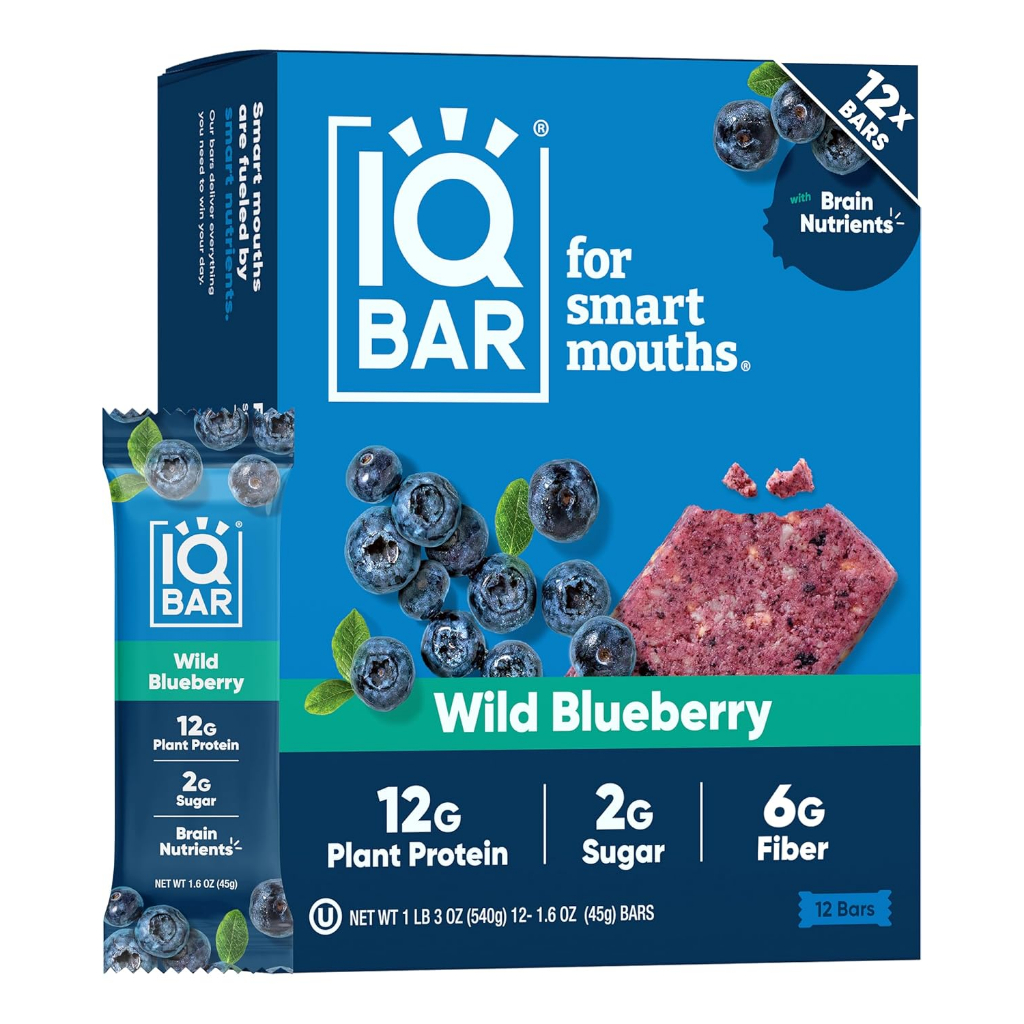 Protein Bar + Brain Nutrients nutritional cake supports Brain function: IQBAR box of 12 bars with all flavors