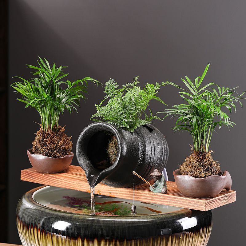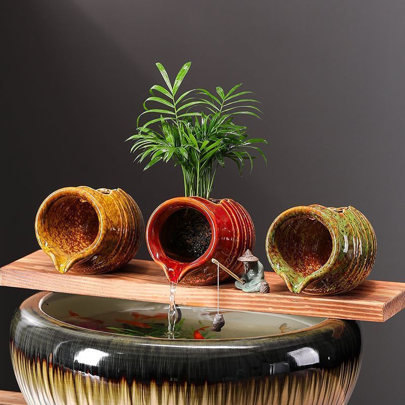 中式陶瓷流水景观循环水摆件庭院花园造景装饰小陶罐鱼缸过滤配件Chinese Ceramic Flowing Water Landscape Circulating Water Decoration Courtyard Garden Landscape Decoration Small Clay Po