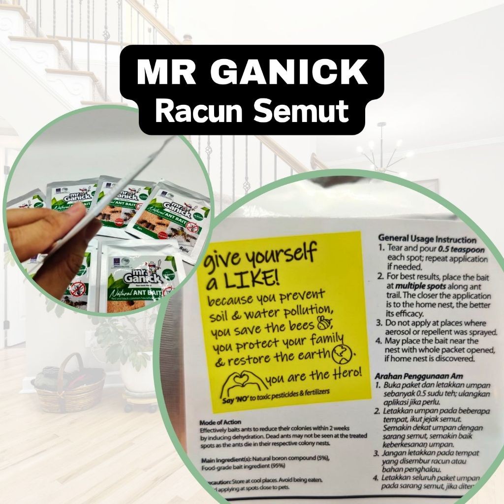 Mr. Ganick Natural Ant Bait, umpan semut organik (SIRIM approved), perlindungan semut efektif