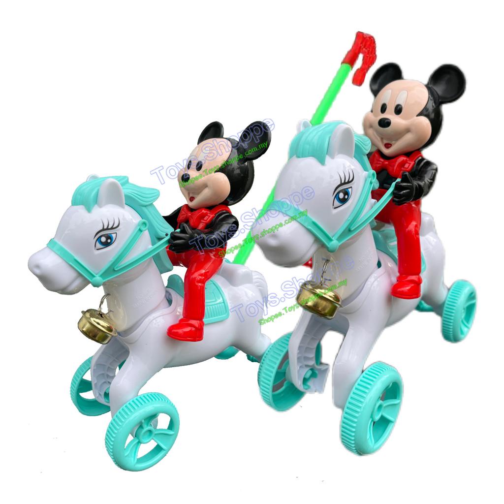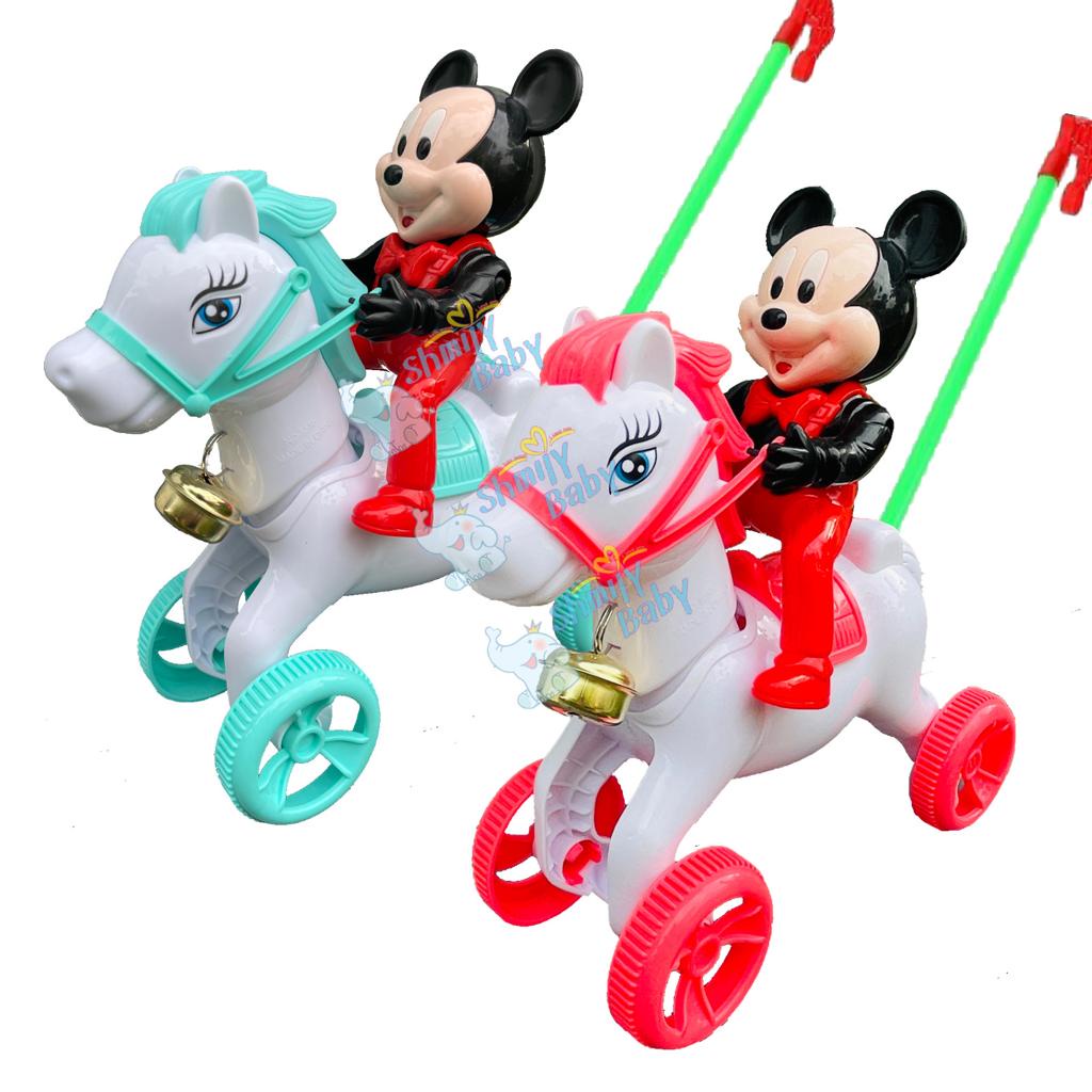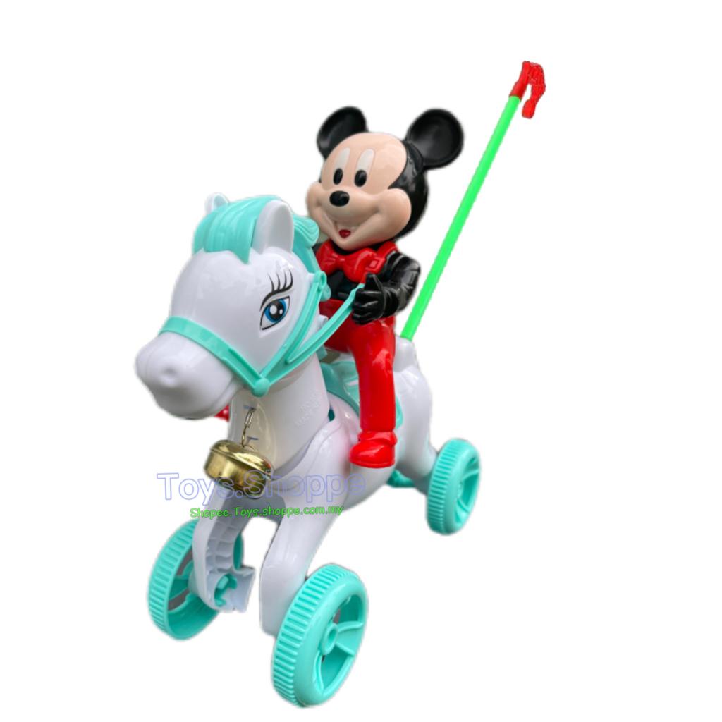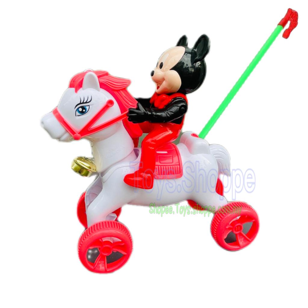 push and pull baby walker mickey Pushing Mickey Riding Horse with Bell Ringing Mainan Tolak Jalan Push Walking