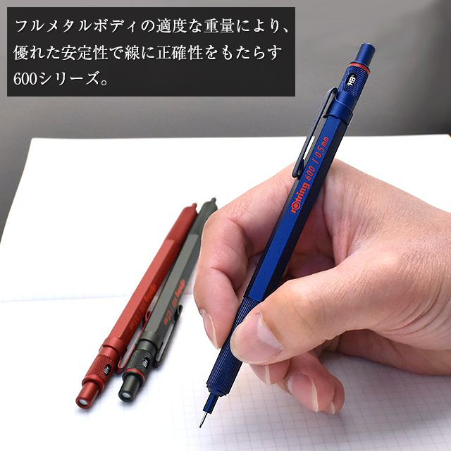 rOtring 600 Special Color Edition Full Metal Drafting Pencil (0.5 mm), Ballpoint Pen, Blue / Red / Green rotring