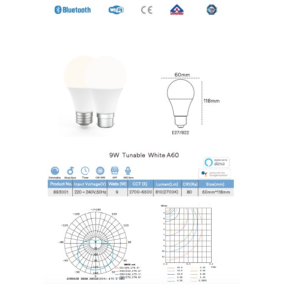 reTOUCH SIGMESH 9w E27 Smart Bulb (TUYA)