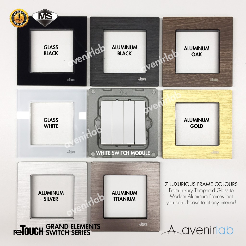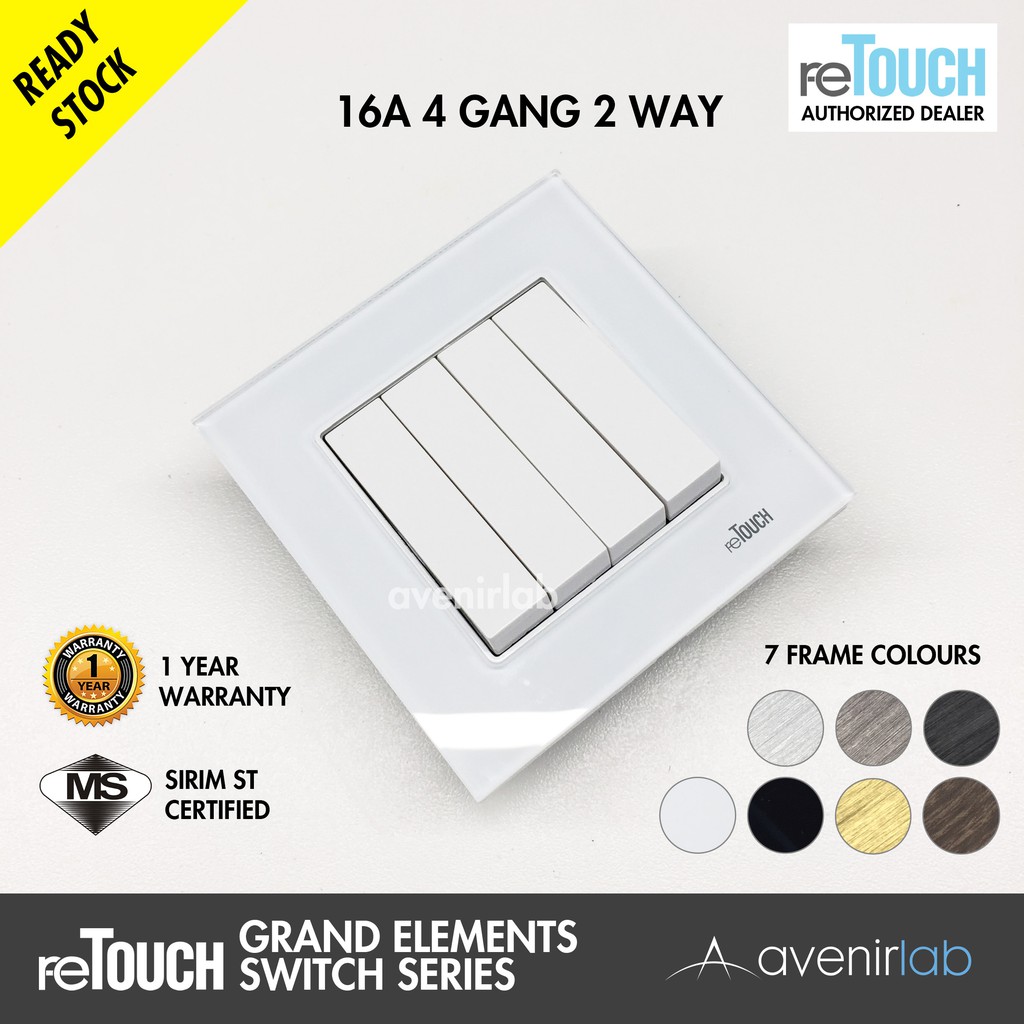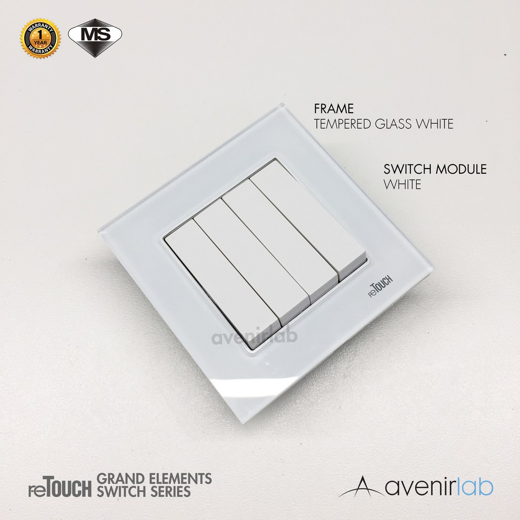 reTouch Grand Elements 4 Gang 2 Way 16A Designer Wall Switch SIRIM Approved [WHITE MODULE]