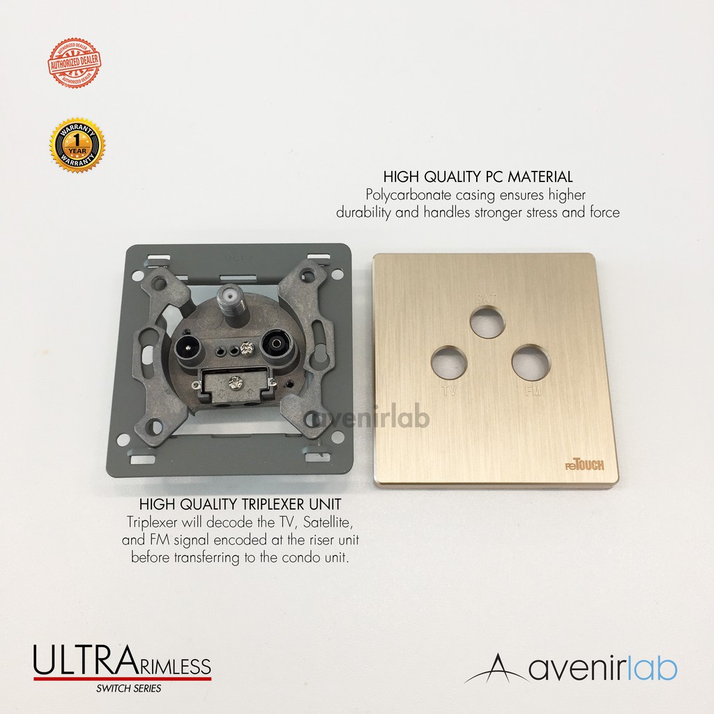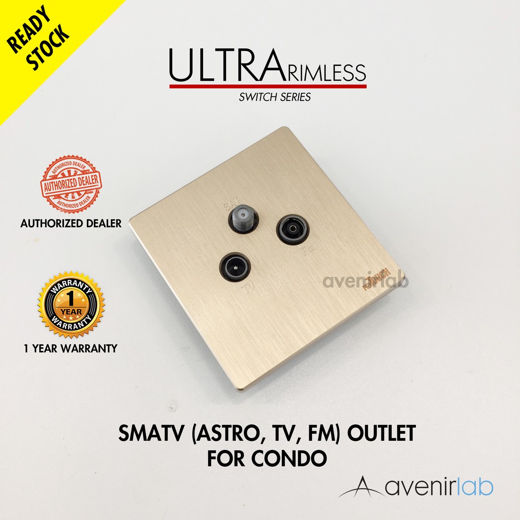 reTouch Ultra Rimless SMATV Astro Satellite TV and FM Outlet Port 3 Gang for Condominium Frameless Switch Socket [GOLD]