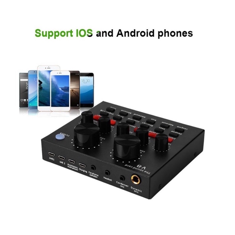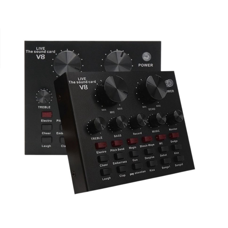 ready stock KL~ V8 Sound Card Broadcast Audio Streaming USB Headset Microphone Live V8 Singing Live Sound Card