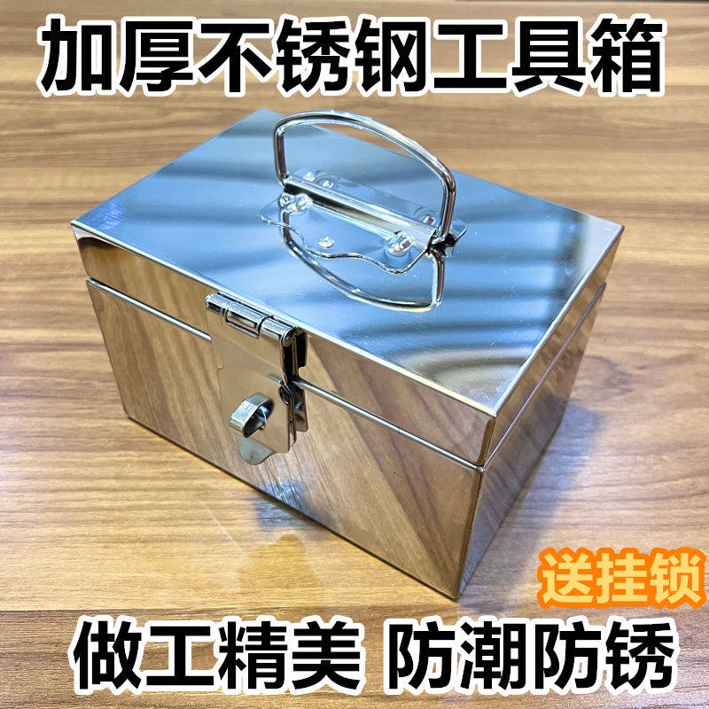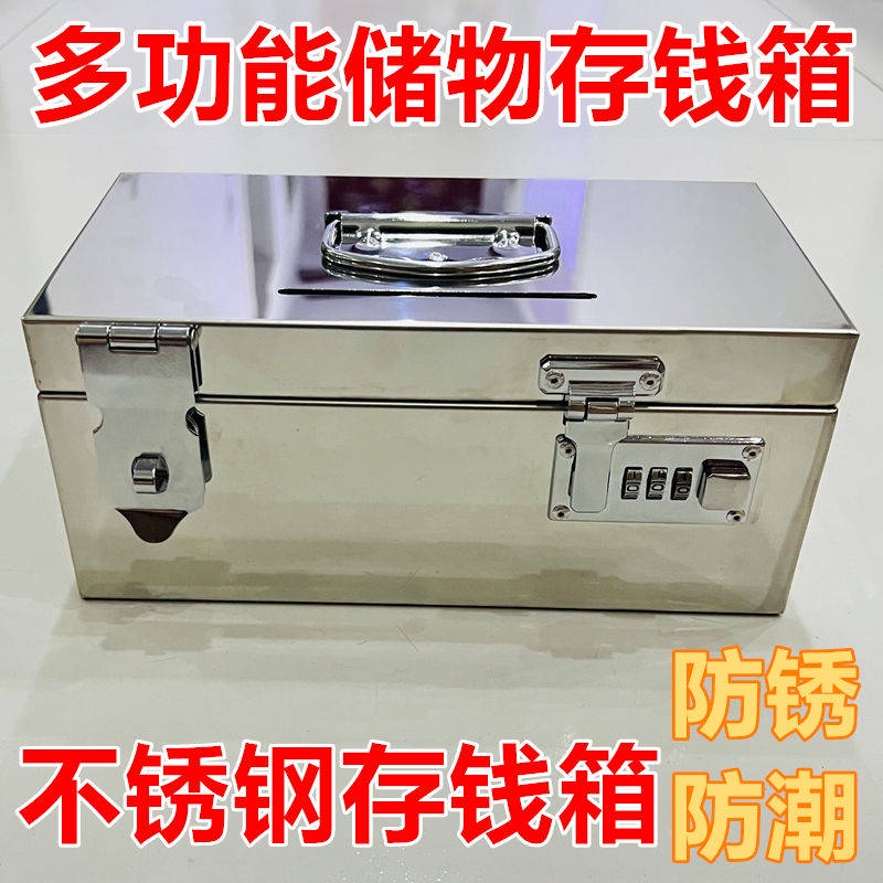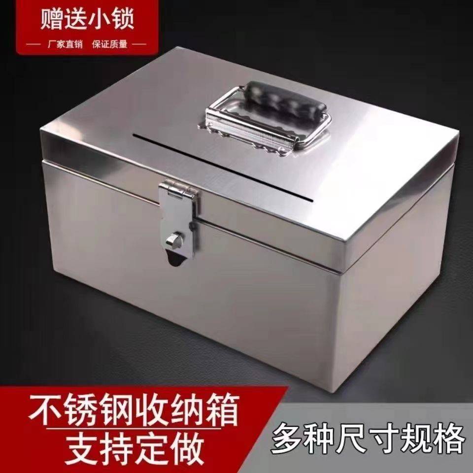 ready stock# Metal toolbox thickened stainless steel password bill box seal storage box free shipping hanging lock deposit money box withdrawal box