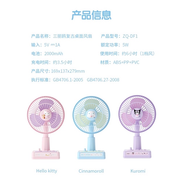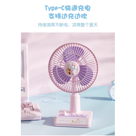 ready stock kl, original hello kitty table fan, hello kitty rechargeable fan