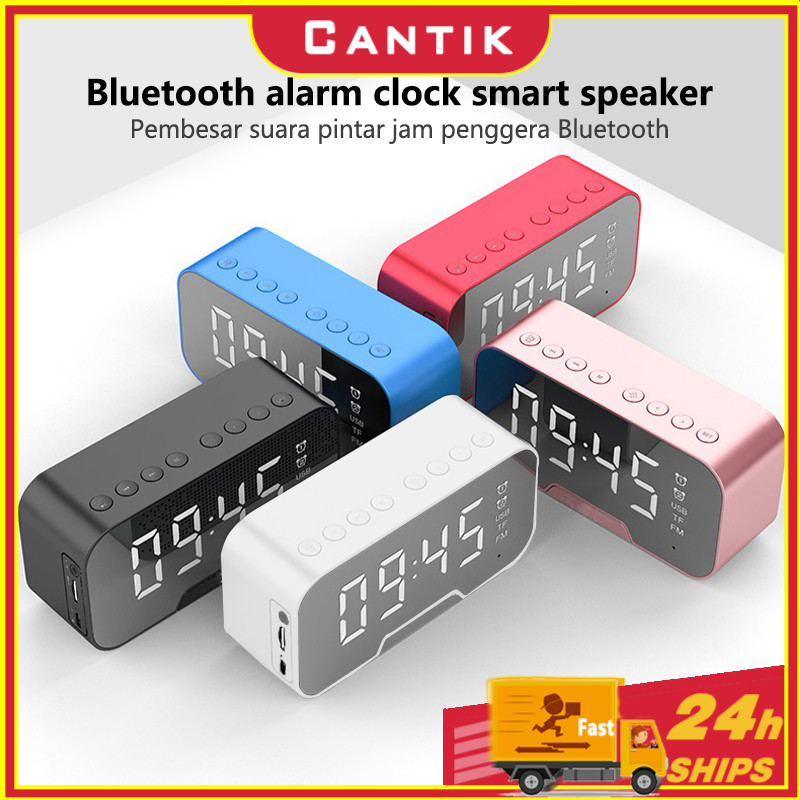 🔥【ready stock】🔥 Bluetooth Speaker with FM Radio LED Mirror Alarm Clock Subwoofer Music Player Snooze Desktop Clock