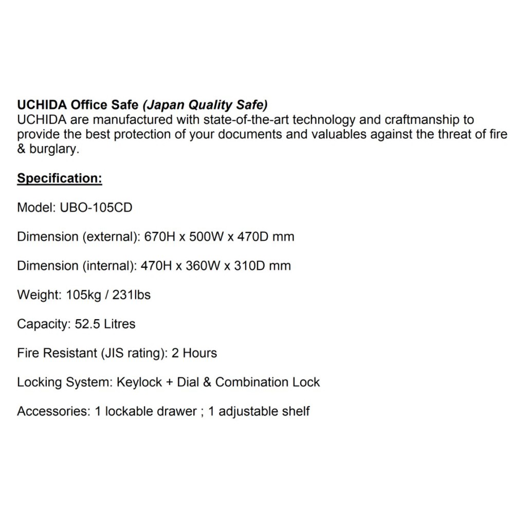 safe box UCHIDA Fire Resistant Safe Box (UBO-105CD - 105kg peti besi uchida