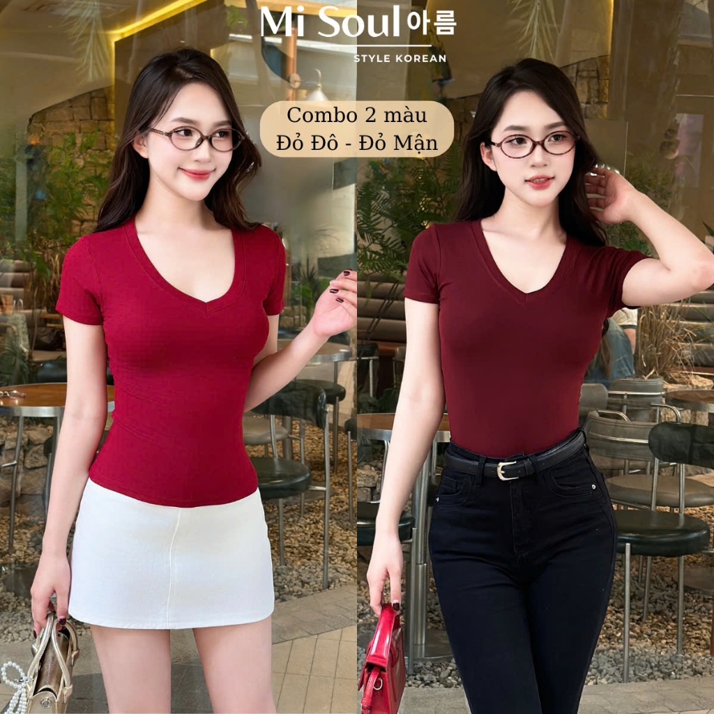 short sleeve Women's Soft Cotton Turtleneck T-Shirt BigSize Misoul, Basic V-Neck Plain T-Shirt 406