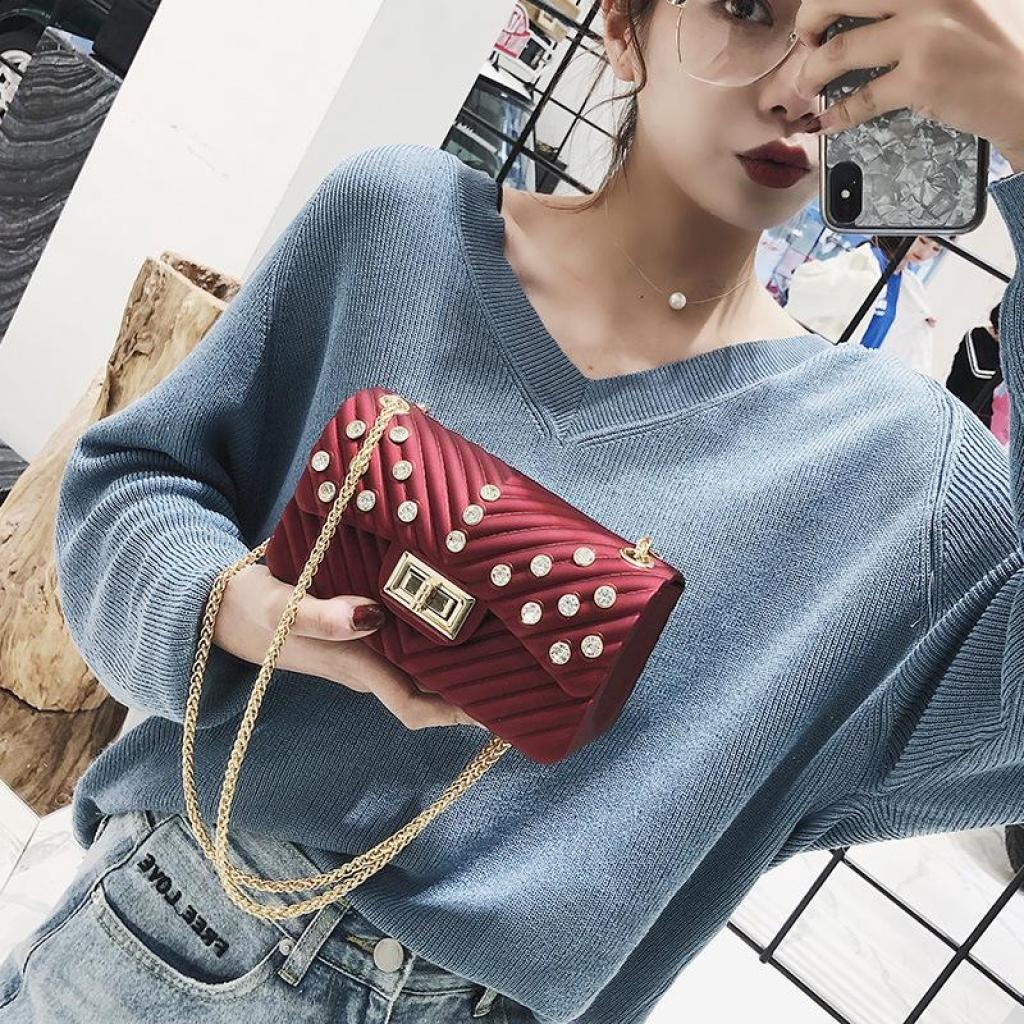 single bag Lotte Malaysia - Korean with Diamond Package Mini Shoulder Diagonal Bag Matte Matte Jelly Bagingle bag Lotte