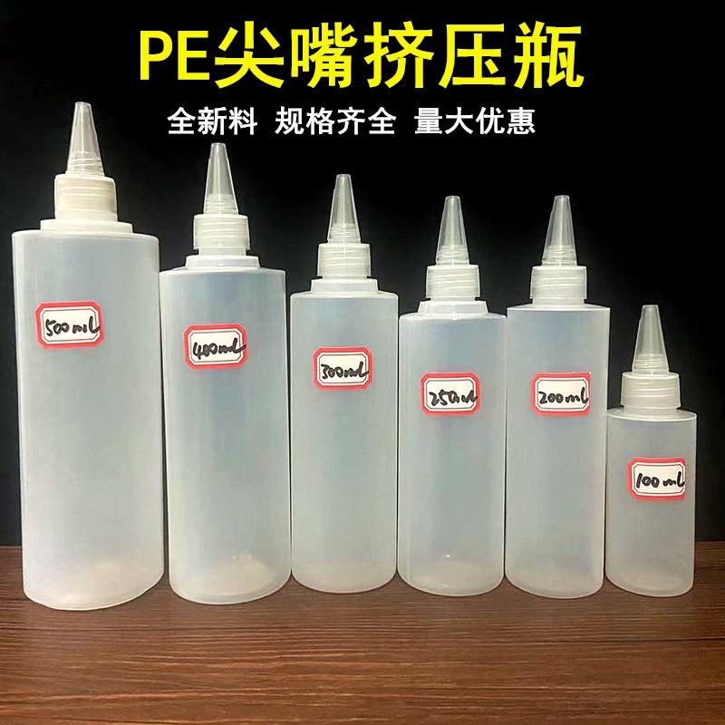 squeeze tip bottle, translucent PE liquid dispensing bottle, pigment bottle, toning bottle