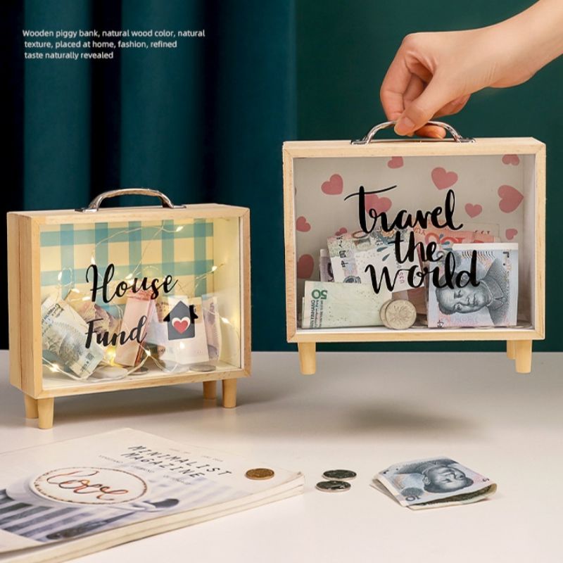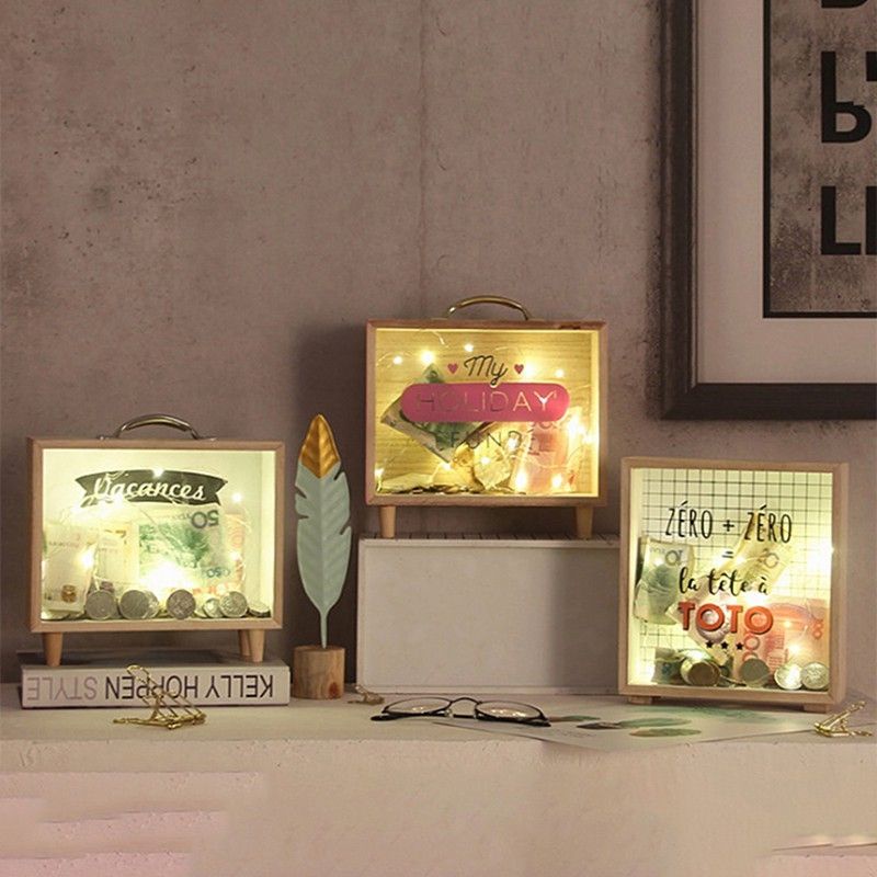 tabung duit kayu nordic storage wood creative